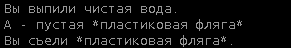 Заебись короче с вылазки вернулся. Решил идти короче с бабой, пока только по домикам там пошарился, чтоб было чо похавать. Во чо набрал, ну и на месте пару банок пиваса придушил, заодно пару лохов зелёных на перо посадил. Ещё какого-то паравоза в доме запер и светящегося мужика видел, у меня так батя светился, когда в счётчик отвёртку не туда воткнул. Баба, кстати, не вернулась, но ничо, без неё проще, да и жунальчик я принёс, эффект типа тот же, а он хоть жрать не просит.