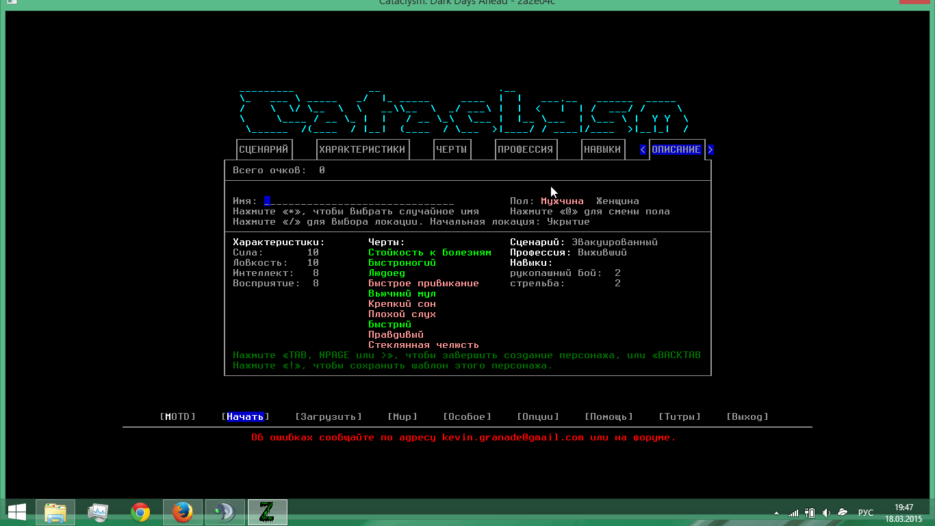 Итт мы начинаем жить вдали от города. Изменённые параметры мира: Длительность сезона 40 дней Статичные и динамические неписи с коэфициентом спавна 0.80 Зомби всех сортов с коэфициентом спавна 3.0, чтобы ссать-бояться идти в города хотя бы первое время.