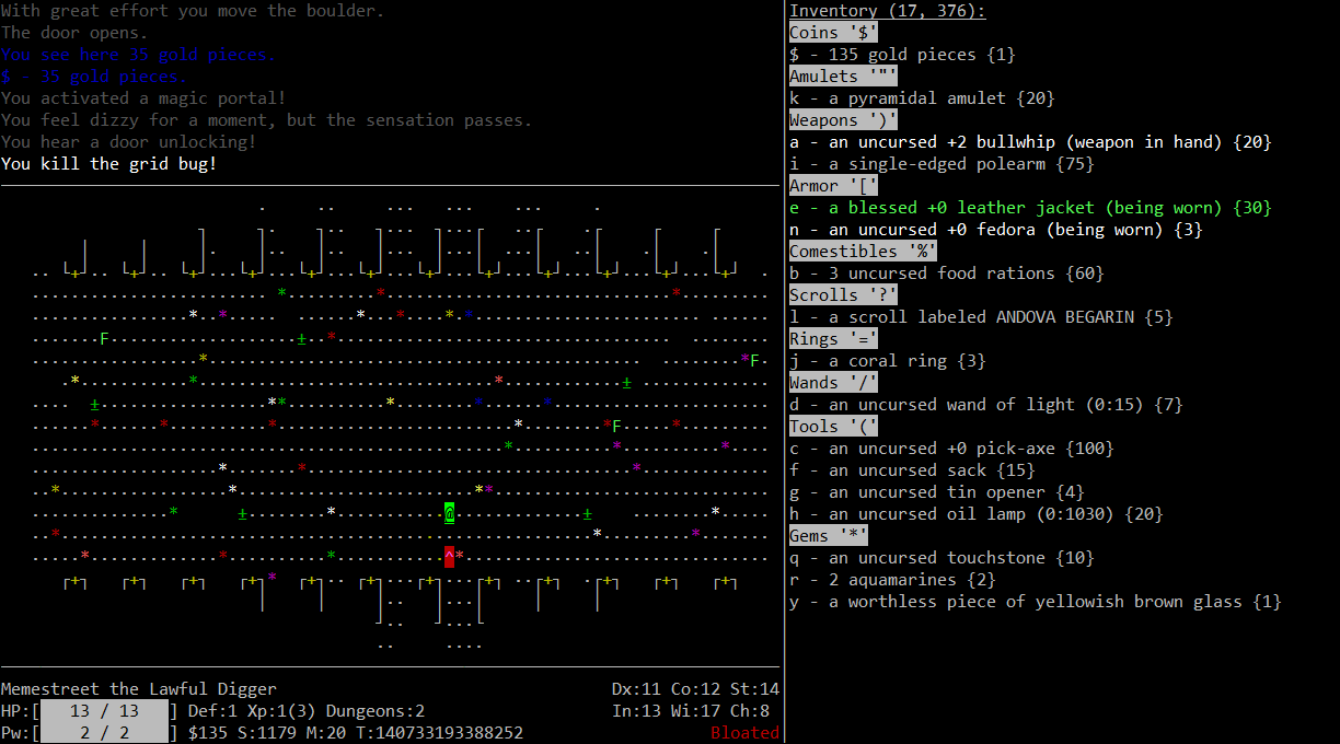 Зашёл в SLASHTHEM, зарандомил персонажа. Выпал пьяница человек. Брожу по подземелью и каждые пару ходов попадаю в галлюциногенное облако и превращаюсь то в жука, то в нагу. Жуком ничего поднять не могу и открыть. Так и бегаю кругами по первому этажу. Как вы в это играете?