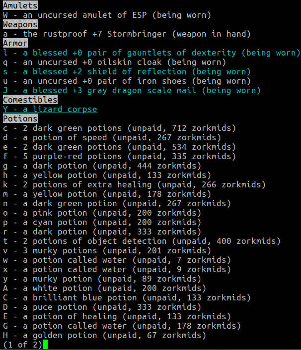 Armor (shirts, body armor, and cloaks) must be put on in the specific order of shirt first, then body armor, then cloak. They must also be taken off in the reverse order. If you're wearing, say, a cursed cloak, you can't unequip the armor under it, and you can't put any armor on over it. Also, cursed equipment cannot normally be removed in any way other than uncursing them. However, if you are wearing, for example, a cursed armor and you physically change form, such as drinking a potion that transforms you into a dragon ten times your original size, the cursed armor will break and fall off. Speaking of polymorphing into a Dragon, if you are wearing (magical) Dragon Scale Mail, you will polymorph into a dragon of the colour of the DSM you are wearing, and this will not destroy the armor.