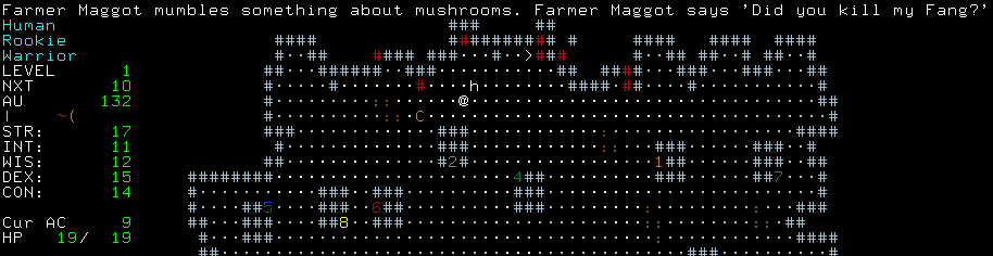 Player and monster shapechanges Variable light and darkness are created by monsters, player gear and player spells, and the player has a meter to measure the light level on their square Mages can drain mana from magic devices Rogues can steal from monsters Temporary brands and slays (Priests, Paladins, Blackguards) Necromancers can see in the dark, and can cast less well in light Healing of hitpoints every turn for a time (Druids) Control of a monster, including making it attack other monsters (Necromancers) Shield bashes (Warriors, Paladins, Blackguards) Decoys which monsters will attack instead of the player (Rangers) Blackguards can go into a state of bloodlust which improves their combat at a price Monsters can whip or spit on the player from nearby Monster groups act more as a group, with leaders and sometimes bodyguards Innate spells (e.g. breaths) and cast spells (e.g. bolts) have separate frequencies Deeper in the dungeon shallow monsters are less likely to appear Monsters can teleport to the player Spiders can weave webs Monsters can have innate darkness around them Traps added that trigger on leaving their square Ringwraiths can inflict the Black Breath Monster spells can have different levels depending on monster spell power The player now has a hunger meter, and food is more important As with classes, all races gain experience at the same rate, except for humans who are faster, and high-elves who are slower The Temple has been replaced with a Bookseller who sells books of all realms