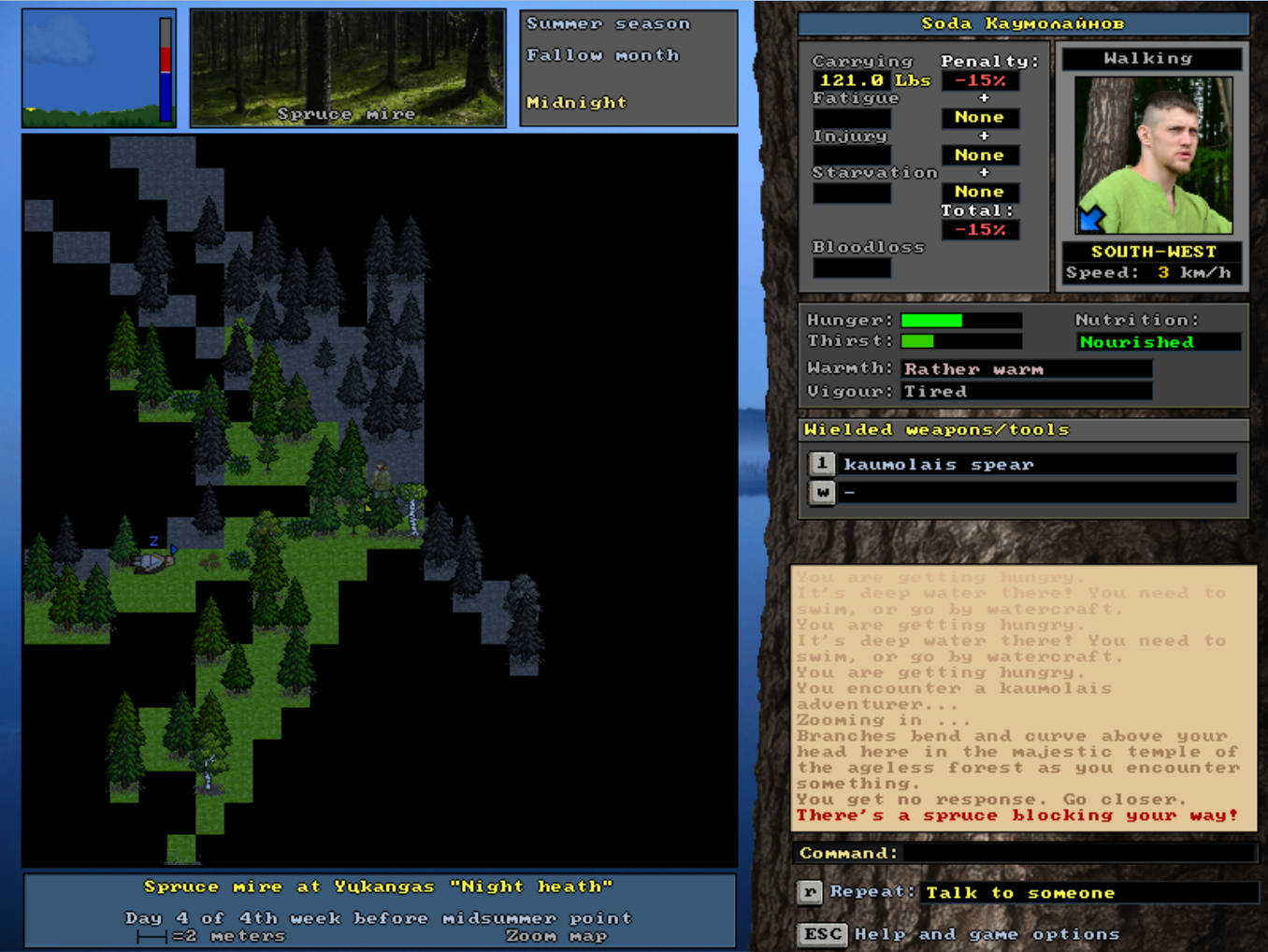 >>37127 Интересно, можно ли в урве умереть от старости. Или Самик не продумал, что кто-то может 80 лет выживать написать бота для "прохождения" его игры, как это делали с первым хаком? Я никак не смогу это проверить впрочем. В этой игре год времени, как целое прохождения другого рогалика.