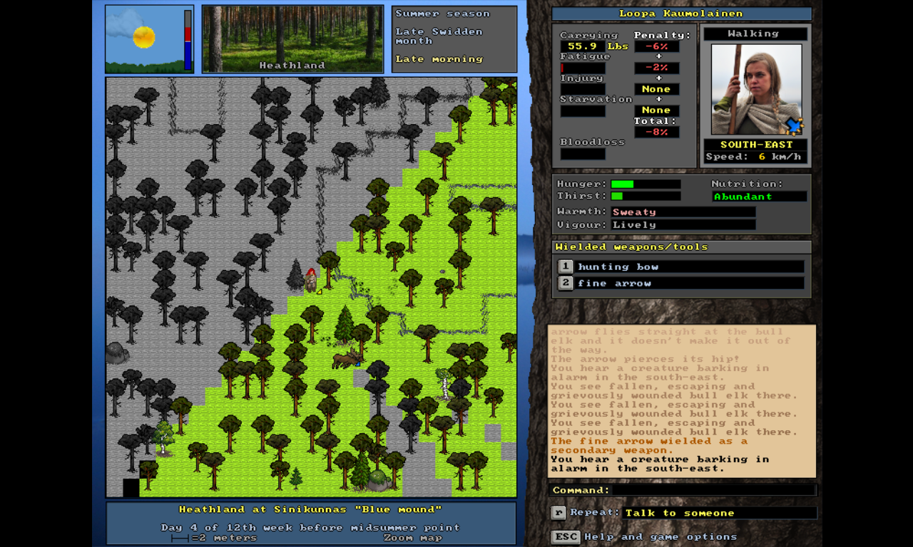 >>37607 Ягоды и грибы вылупляются к лету. Лови рыбу, чтобы выжить, это здесь безоговорочная имба. Можно делать почти голыми руками. Игра не про суровое выживание, а про отыгрыш и атмосферу. А еще в начале создания персонажа выбери туториал. >Как поймать какое бы то ни было животное, если оно в любом случае быстрее тебя. Ну, способов как минимум 4: 1) Если твой персонаж выносливый и быстрый, то просто беги за оленем по открытой местности, рано или поздно он выдохнется. В лесу такое провернуть нереально. 2) Выкопать кучу ям-ловушек в местности, где мелькают звери и ждать. 3) Купить собаку и дать ей ранить/загнать зверя. 4) Стартануть за персонажа с высоким навыком стрельбы из лука и просто удачно подстрелить животное
