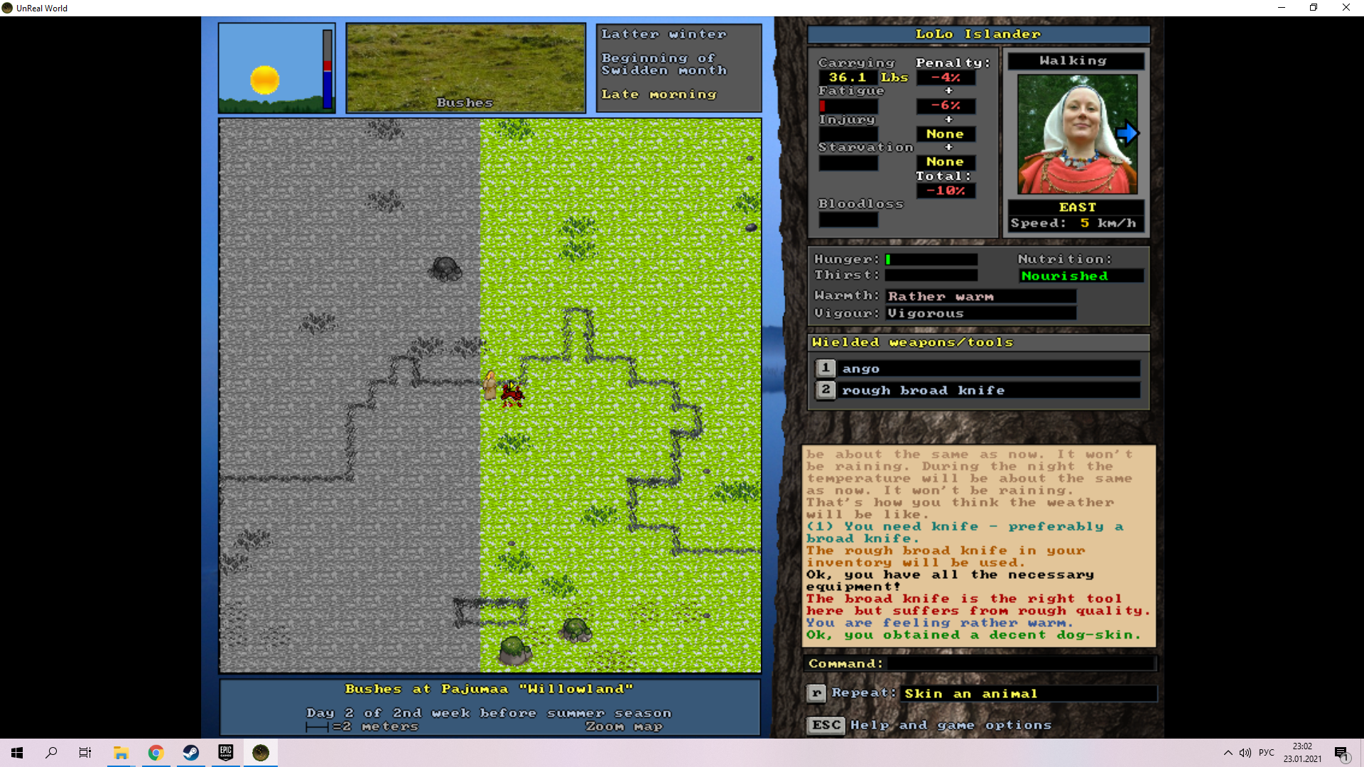 UnReal World или UrW - это ролевая игра в жанре рогалик, действие которой происходит в суровой Финляндии конца железного века. Она представляет собой реалистичный игровой мир, богатый исторической атмосферой, в которой важную роль играют северный фольклор, знания и образ жизни.