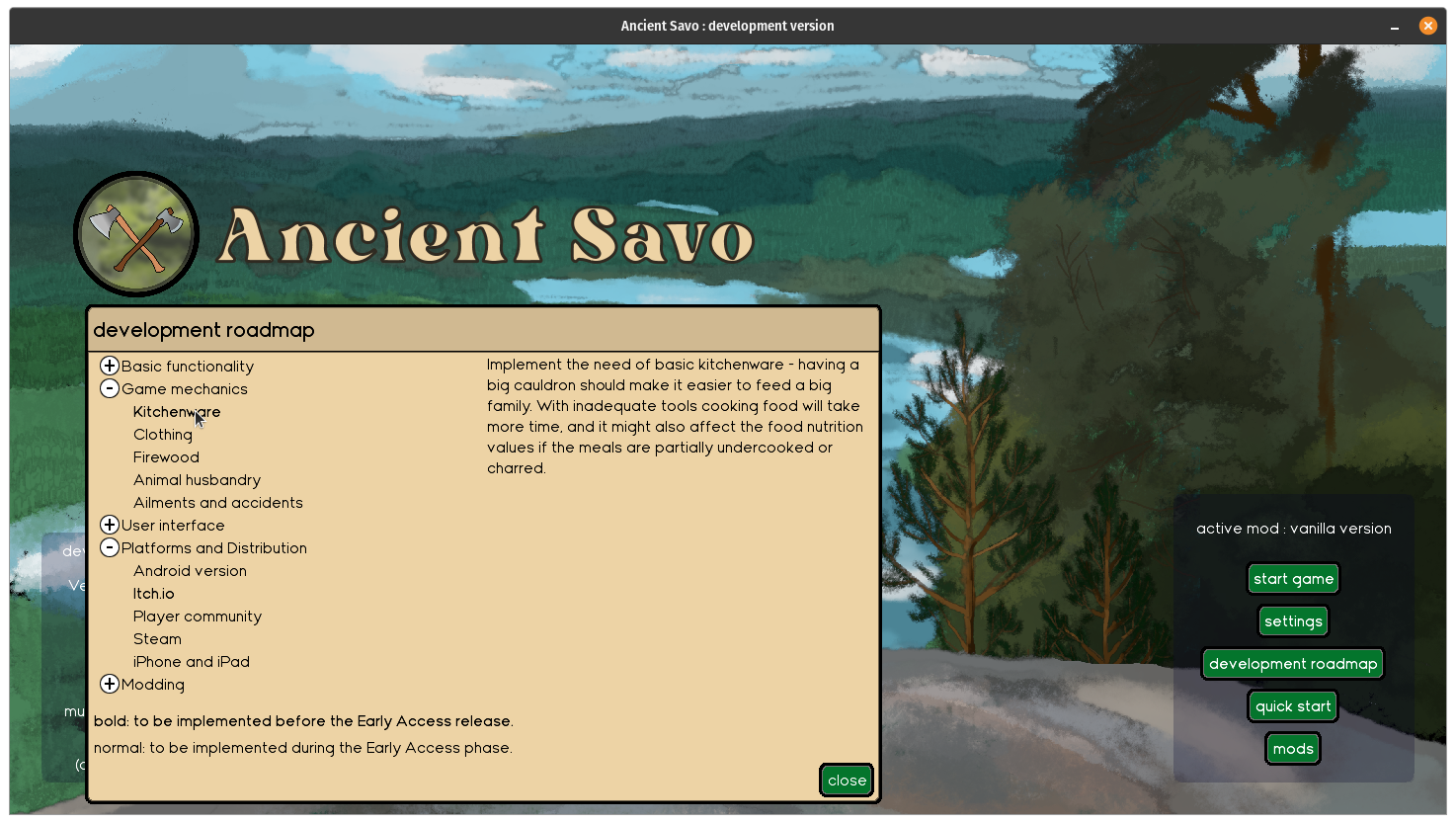 Игра бесплатная, но в стиме скидка 35% и праздничное меню. Самиг и Еррка собираются запускать краудфиндинг для небольшой инди игры. Если взлетит, будут больше кодить Урв. Но мы-то знаем, что не взлетит. Никаких наследников в ближайших версиях не планируется. Подсвеченные в родмапе изменения на ближайшие версии: улучшенная баня, регулирование температуры и обветшание хат.