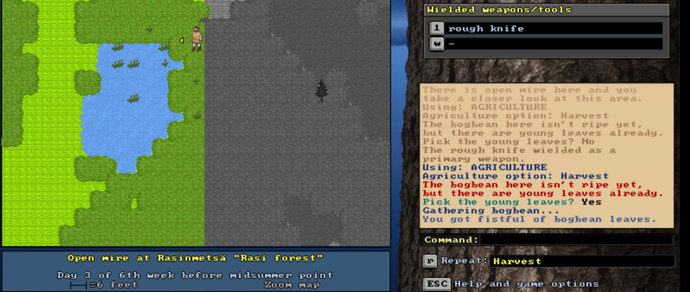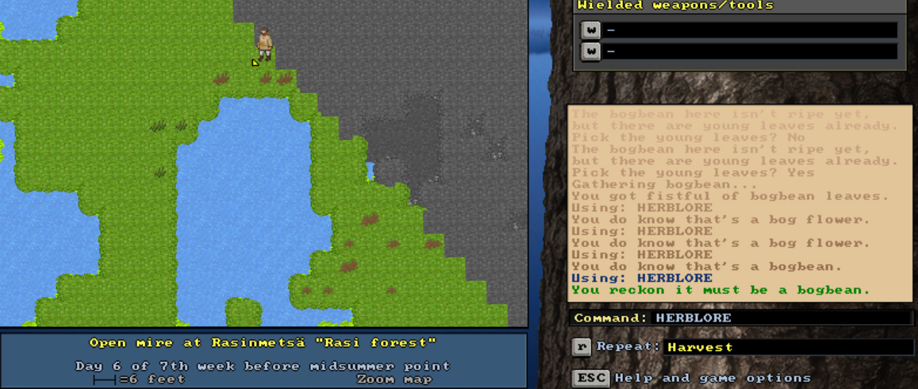 Пытался найти bogbean на болотах, в вики написано, что в июне они уже цветут и пахнут, а на деле нихрена на нашел. Стартанул летом, чтобы корней копнуть на приманки, пока тыква не выросла. Возможно, вики пиздит. Даже скриншоты этих бобов есть только для старых версий игры с другим тайлсетом.