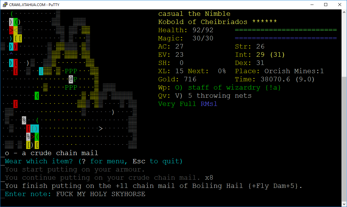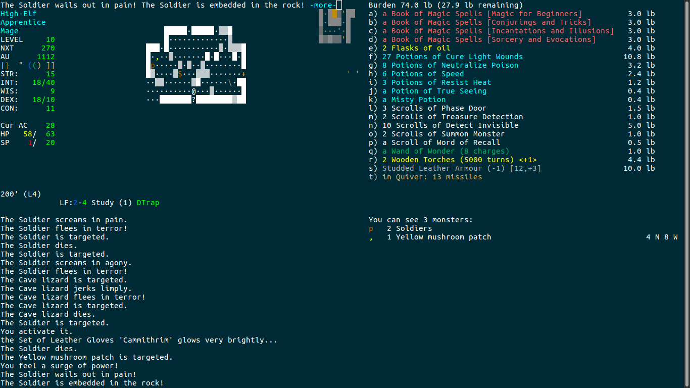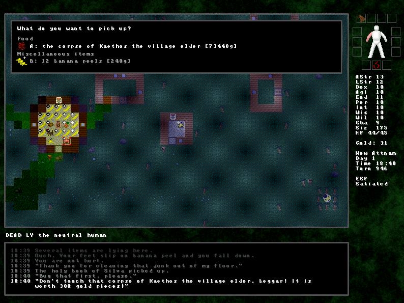 Кстати, играть на английском не такая уж сложная задача. Помучиться первые три часика со словарем, потом начинает все идти легко, особенно в играх наподобие Stone Soup.