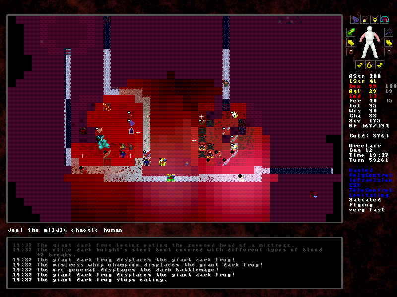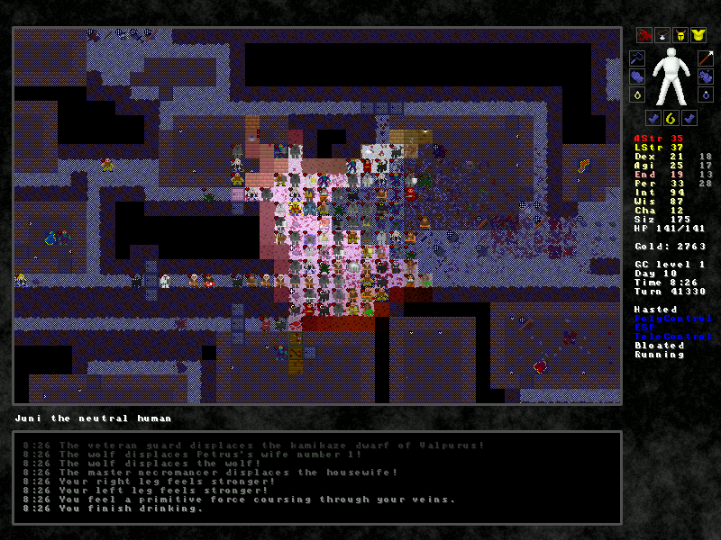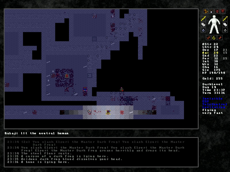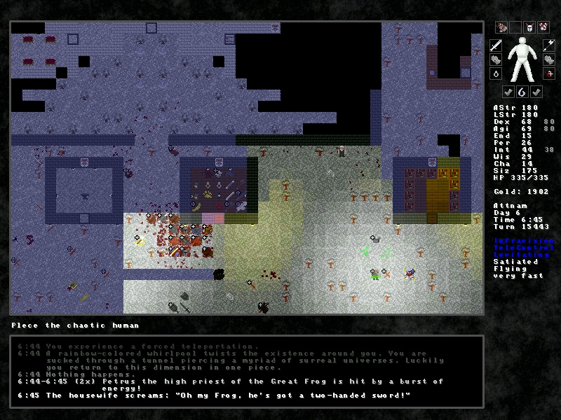 >>173 Я в супе пытался в тайлы, крайне неудобно. Единственное, чем они лучше — видно облака под мобами и вещи под облаками. Во всём остальном для меня ASCII информативнее и удобнее. По букве и цвету сразу выделяются угрозы, которые в тайлах легко пропустить.