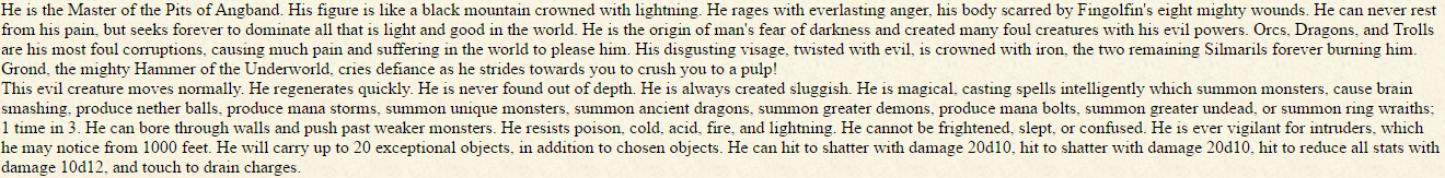 >>22958 Неплох, хотя интерфейс наверное не очень дружелюбный. Я начинал играть в рогалики с него. Первый день вникал в интерфейс и опции, помню как это было мучительно больно, ведь хотелось играть. Часов 6 втыкал, переводил.