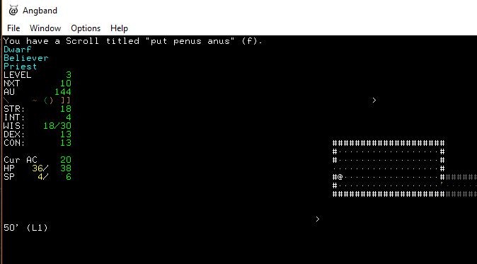 >>7741 Ну это пока. Зато она обновляется каждую неделю. И автор не какой-нибудь студент-распиздяй, а неибаца продвинутый чувак, защитивший диссертацию по рогаликам. То есть можно не волноваться, что забросит на полпути. Скоро выйдет и играбельная версия.