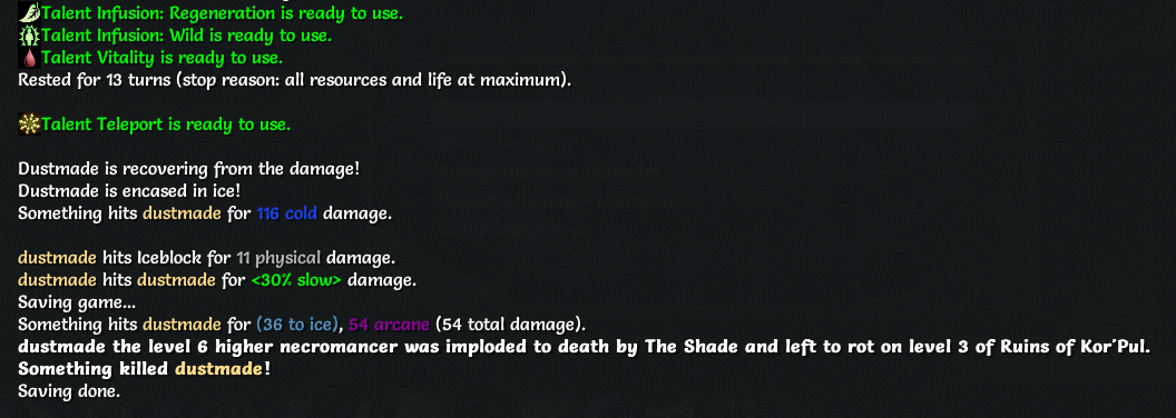 >>3817 Там несколько UI есть, кажется. Я, например, играл в ClassicRogue для винды, там можно в менюшке, или по Ctrl+X выйти с сохранением, а чтобы загрузить, просто при старте вводишь тоже самое имя героя.