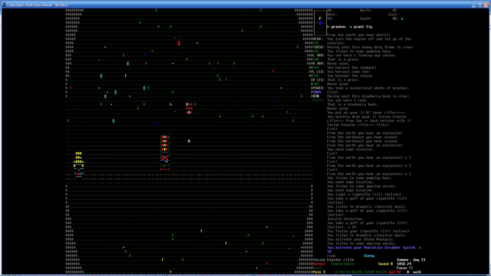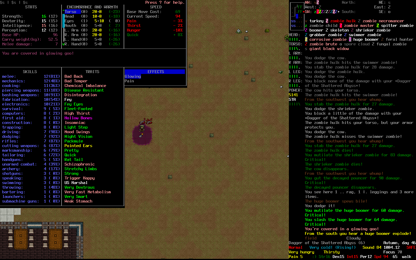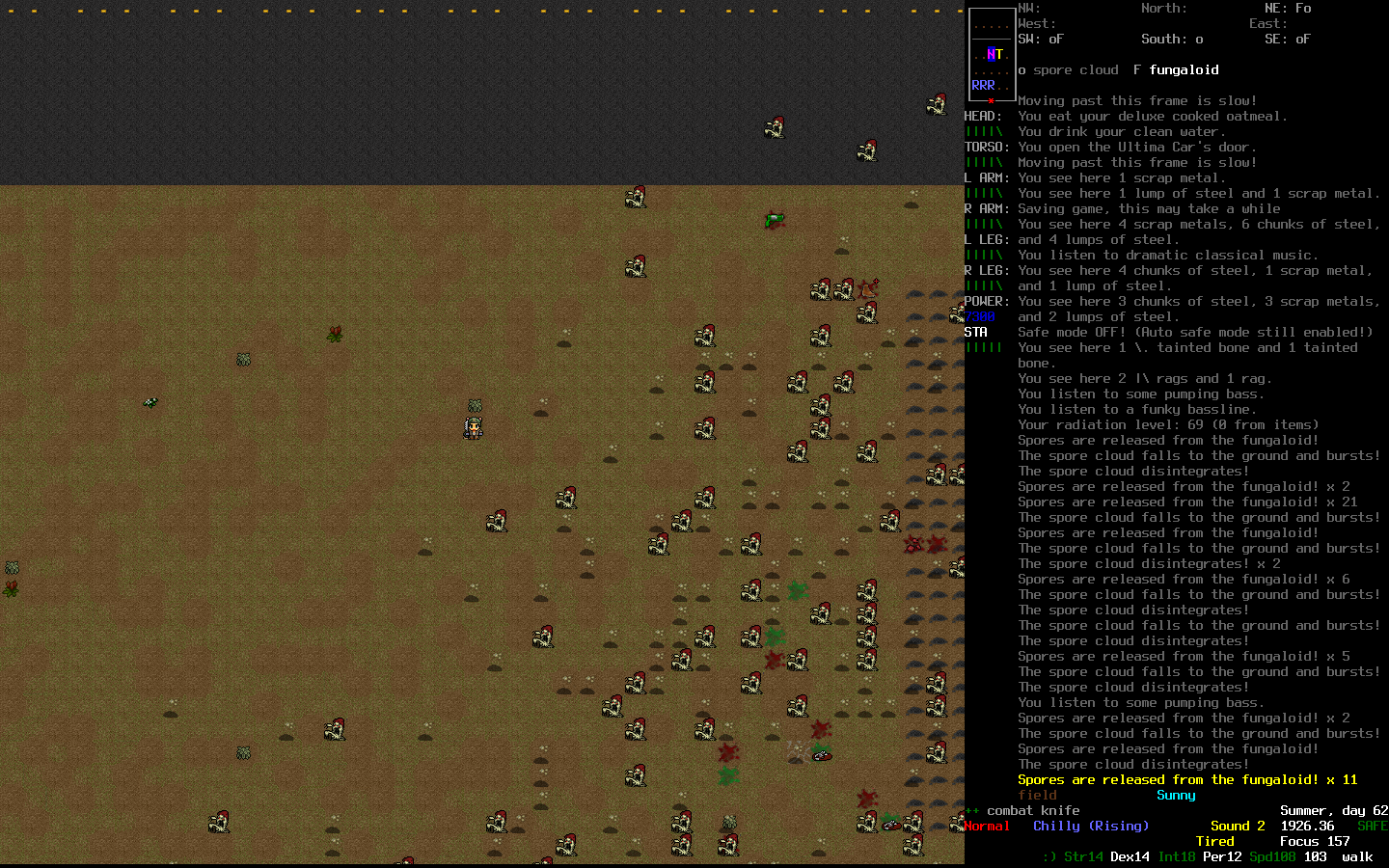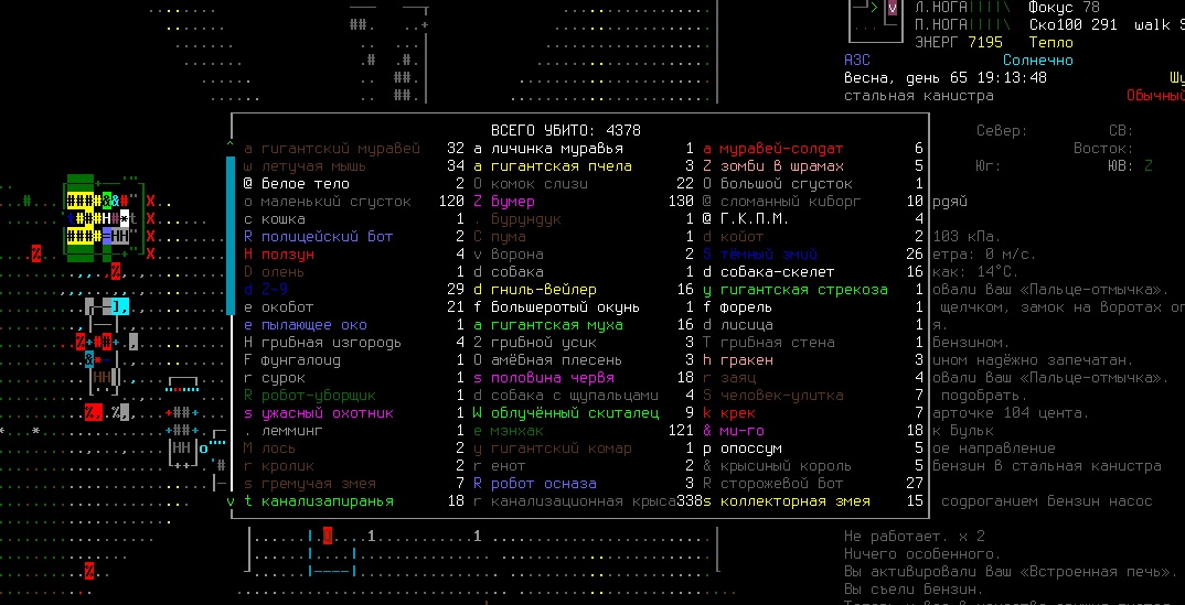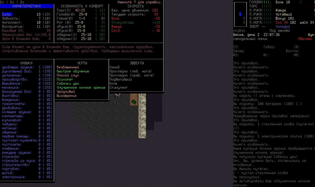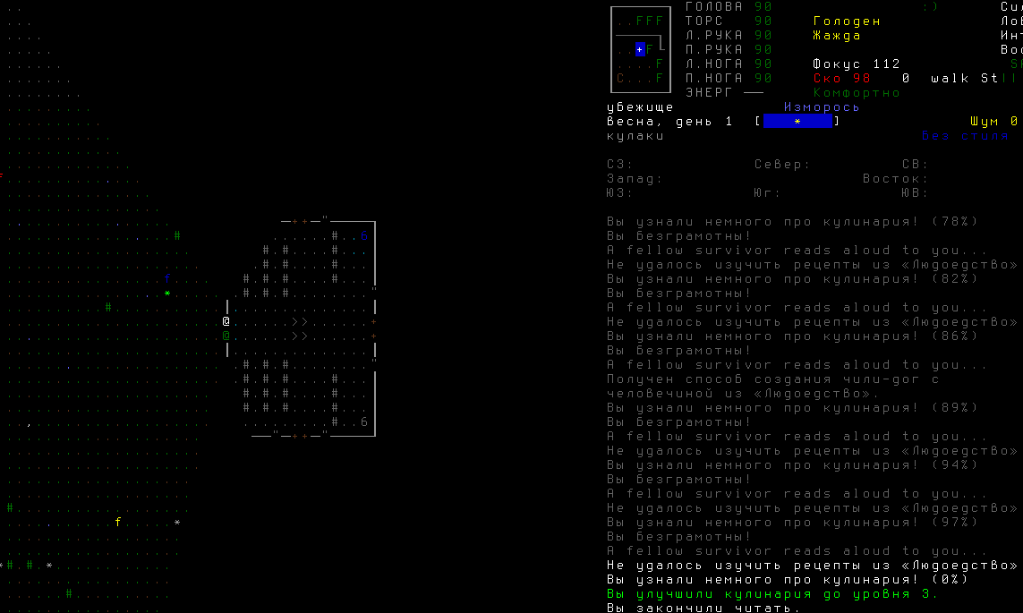 Вкатился в CDDA на днях. Давно так не потел, учтывая что даже играть особо не начал. Оказуалился я настолько что даже перса создать мне было сложно. А как играть начал так и вовсе охуел от количества кнопок которые нужно помнить. Но в игре сразу проглядывается потенциал для отыгрыша кого угодно. Буду учится играть хуле.