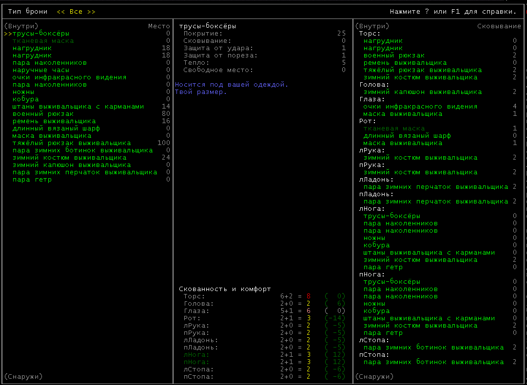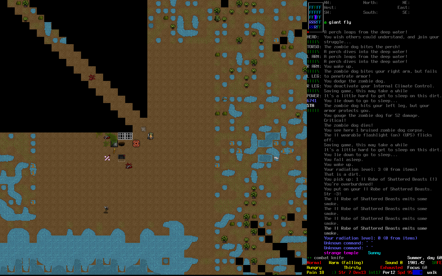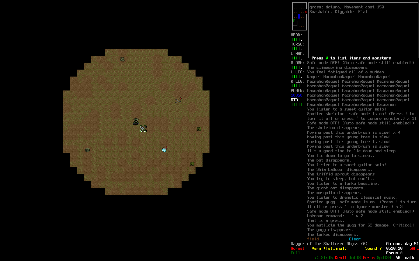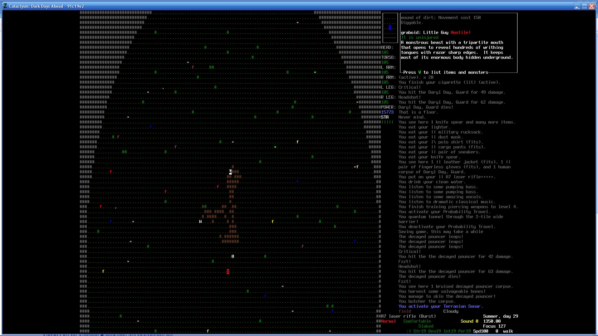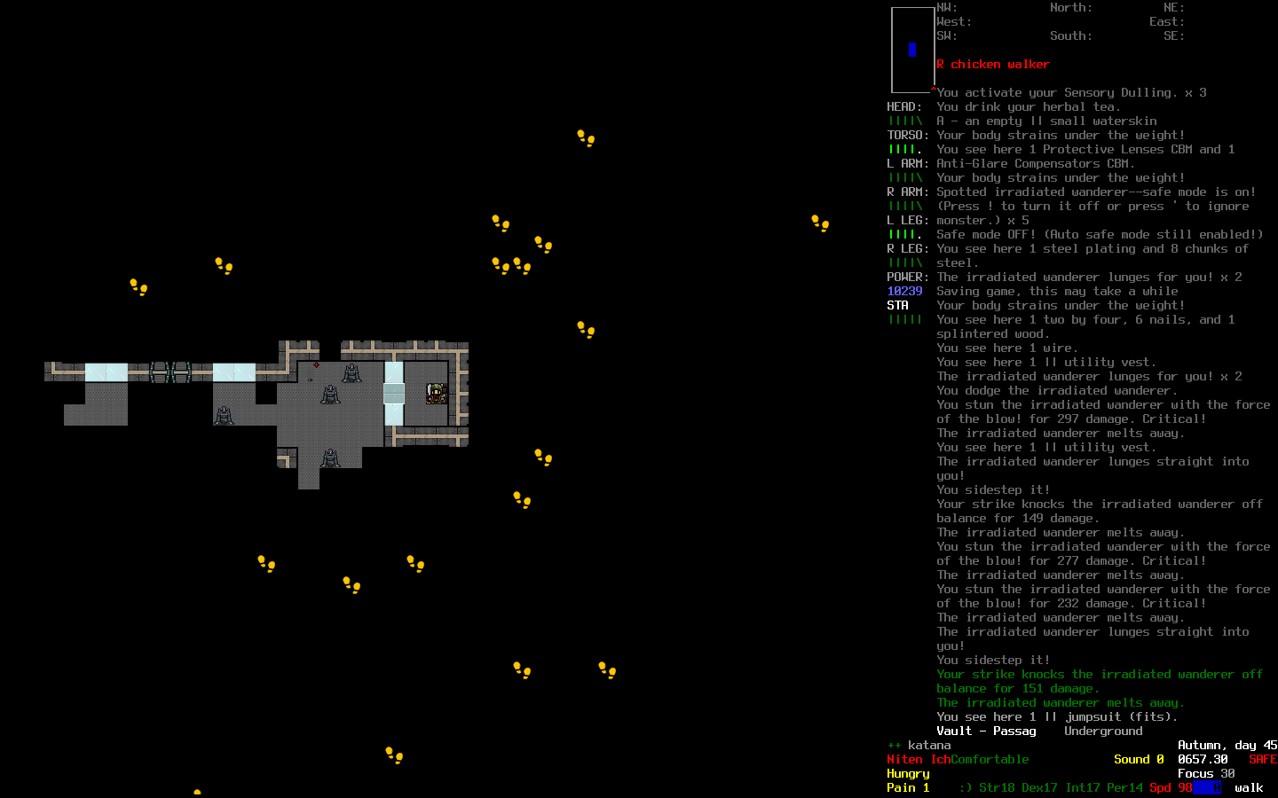 Вкатился в CDDA на днях. Давно так не потел, учтывая что даже играть особо не начал. Оказуалился я настолько что даже перса создать мне было сложно. А как играть начал так и вовсе охуел от количества кнопок которые нужно помнить. Но в игре сразу проглядывается потенциал для отыгрыша кого угодно. Буду учится играть хуле.