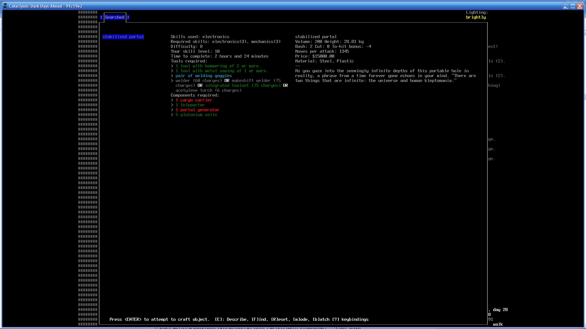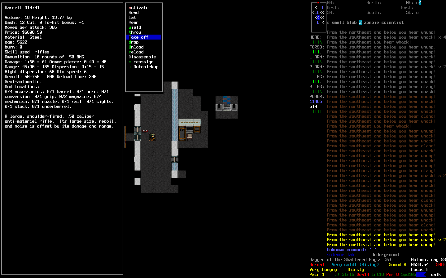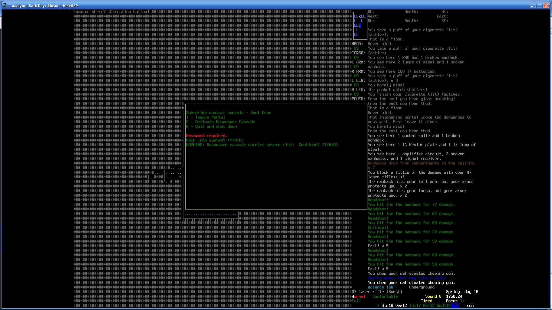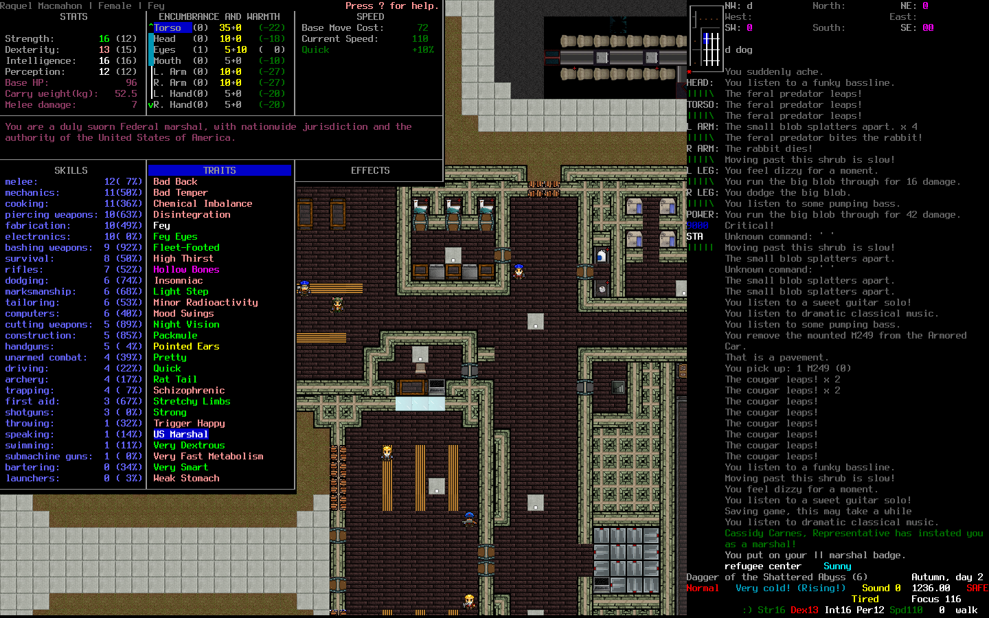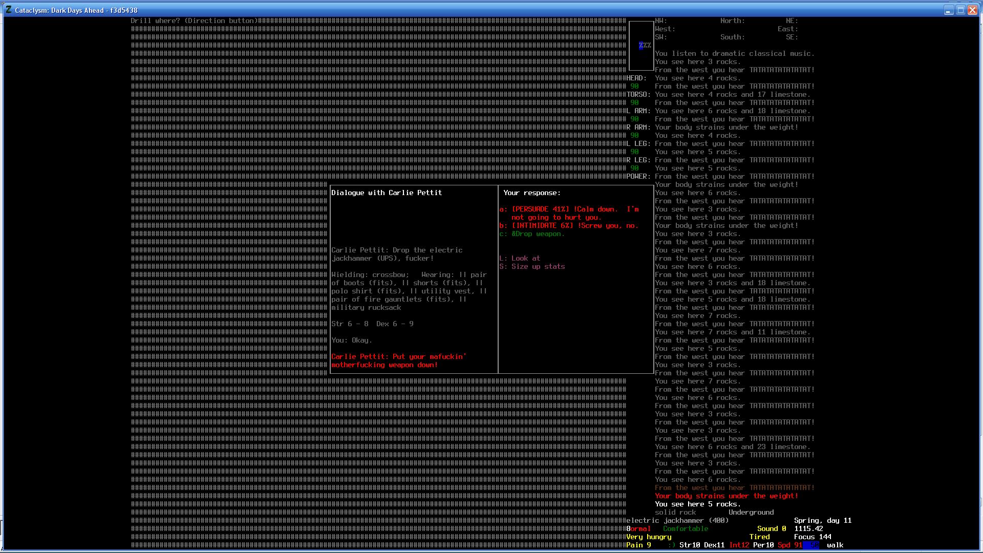 Вкатился в CDDA на днях. Давно так не потел, учтывая что даже играть особо не начал. Оказуалился я настолько что даже перса создать мне было сложно. А как играть начал так и вовсе охуел от количества кнопок которые нужно помнить. Но в игре сразу проглядывается потенциал для отыгрыша кого угодно. Буду учится играть хуле.