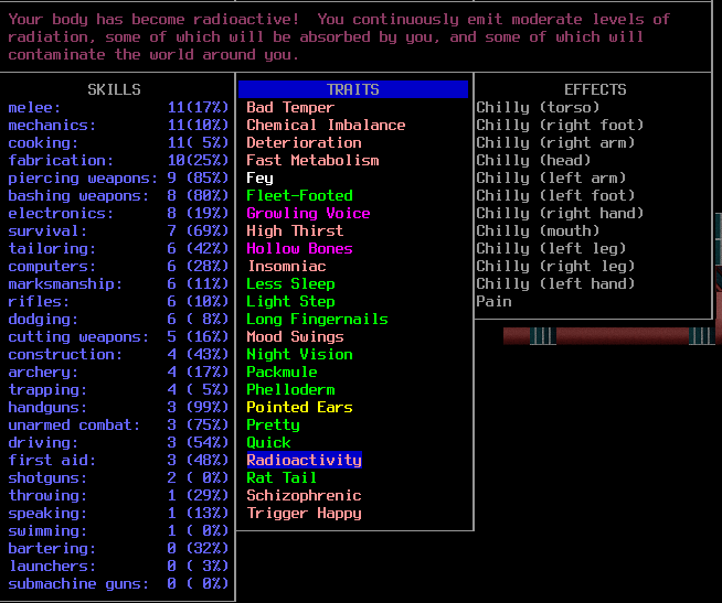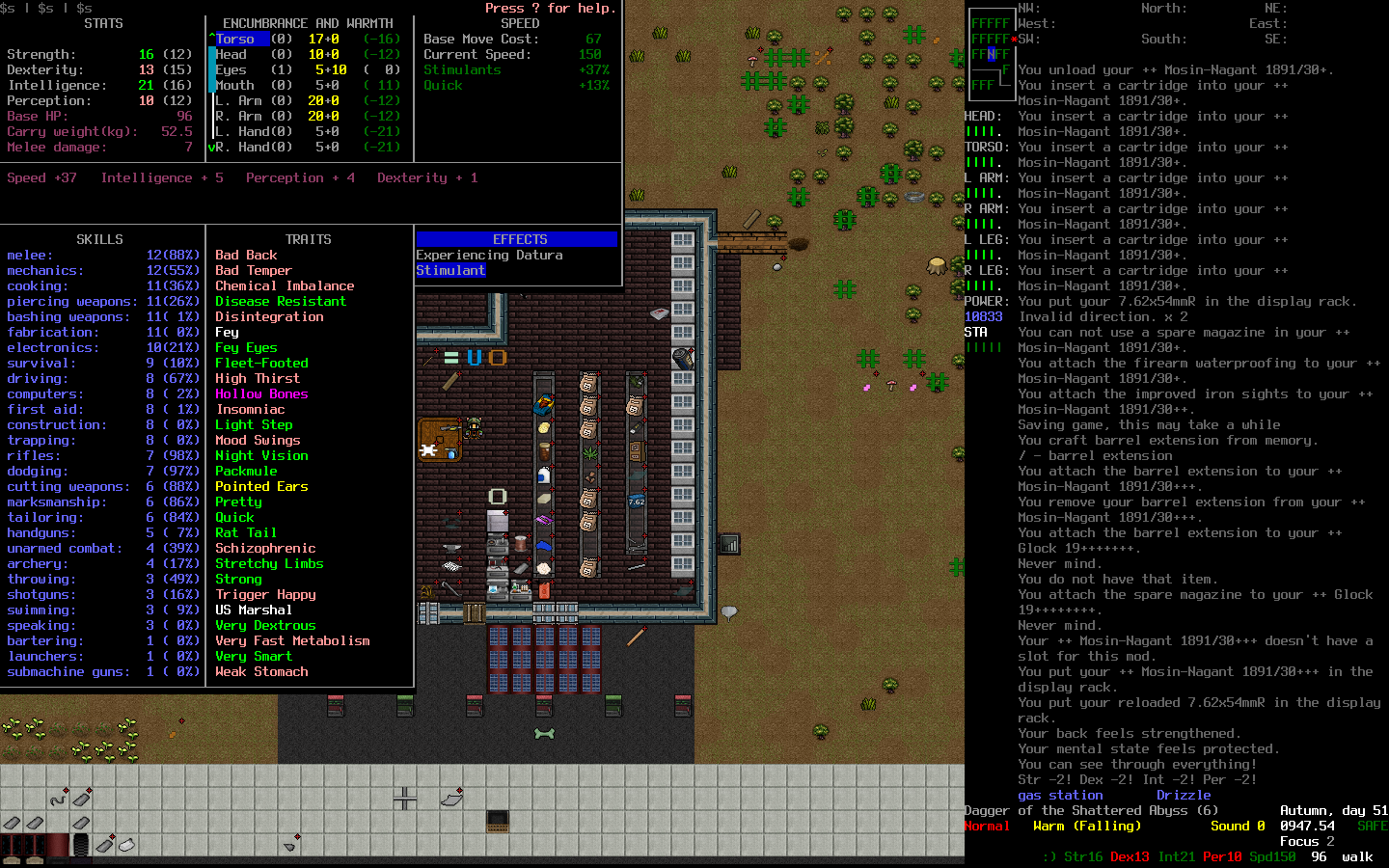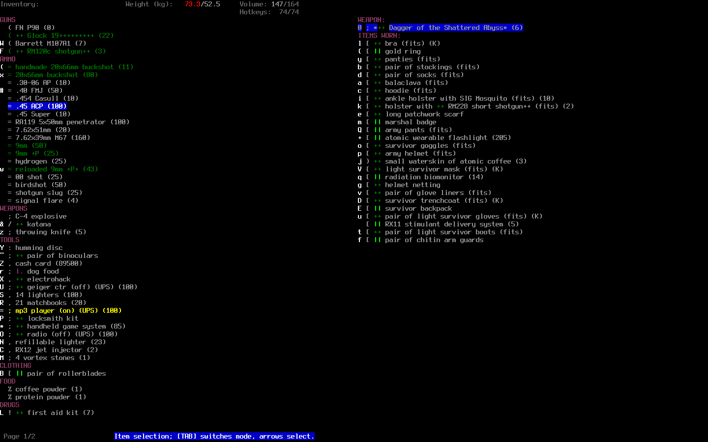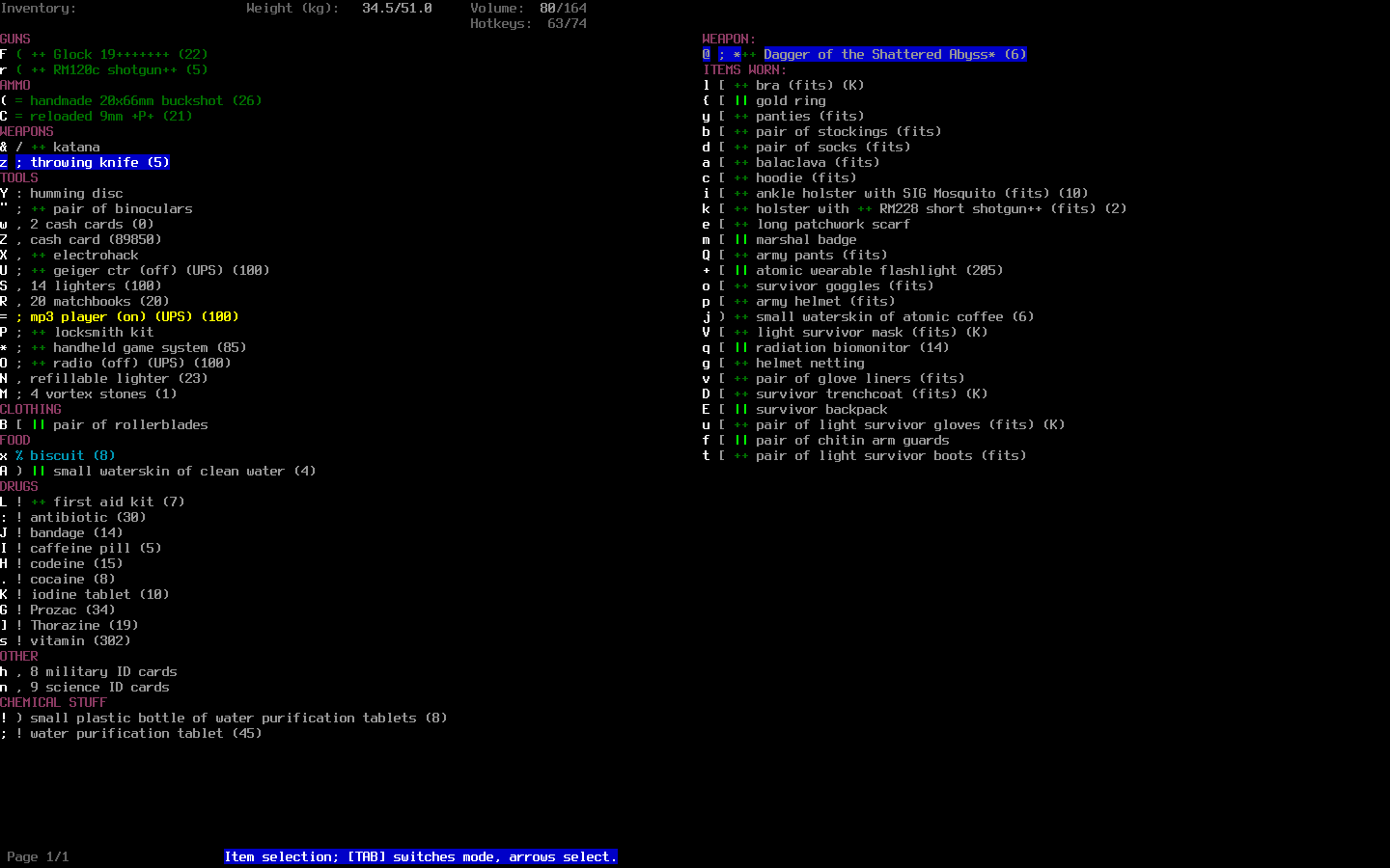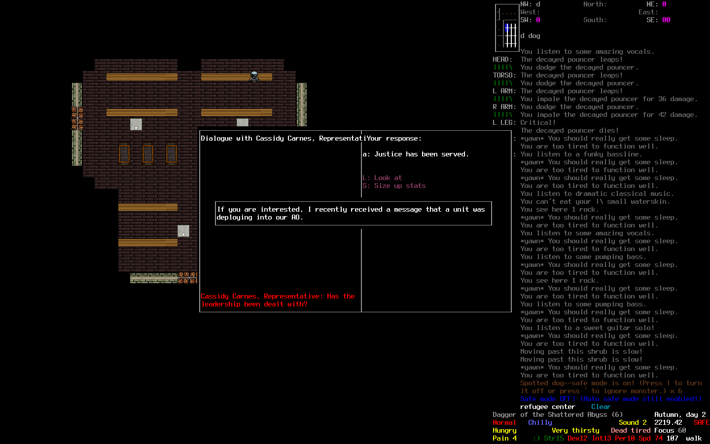 Вкатился в CDDA на днях. Давно так не потел, учтывая что даже играть особо не начал. Оказуалился я настолько что даже перса создать мне было сложно. А как играть начал так и вовсе охуел от количества кнопок которые нужно помнить. Но в игре сразу проглядывается потенциал для отыгрыша кого угодно. Буду учится играть хуле.