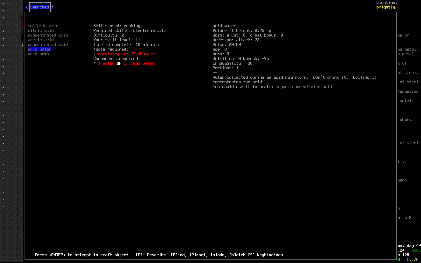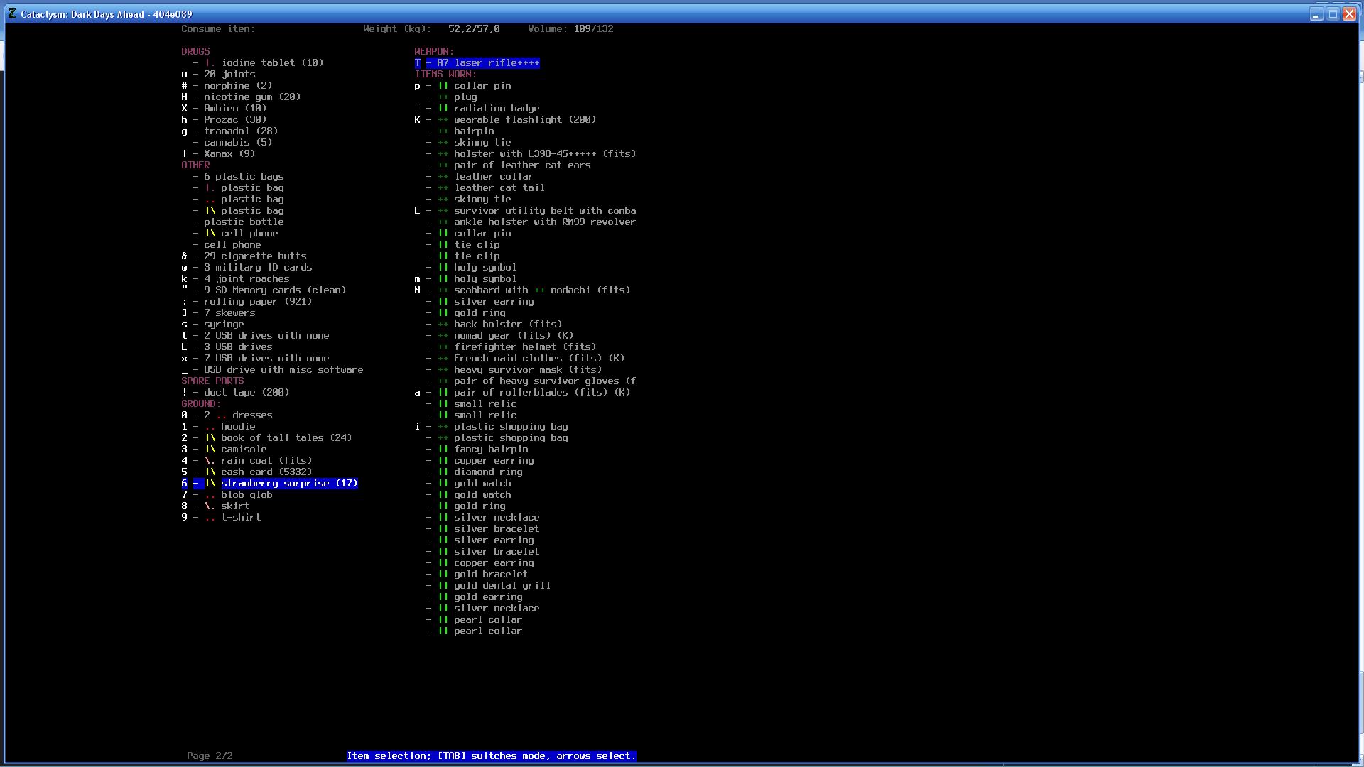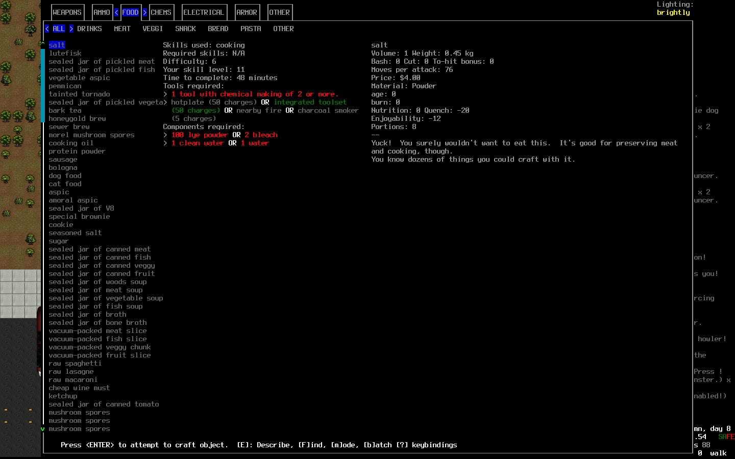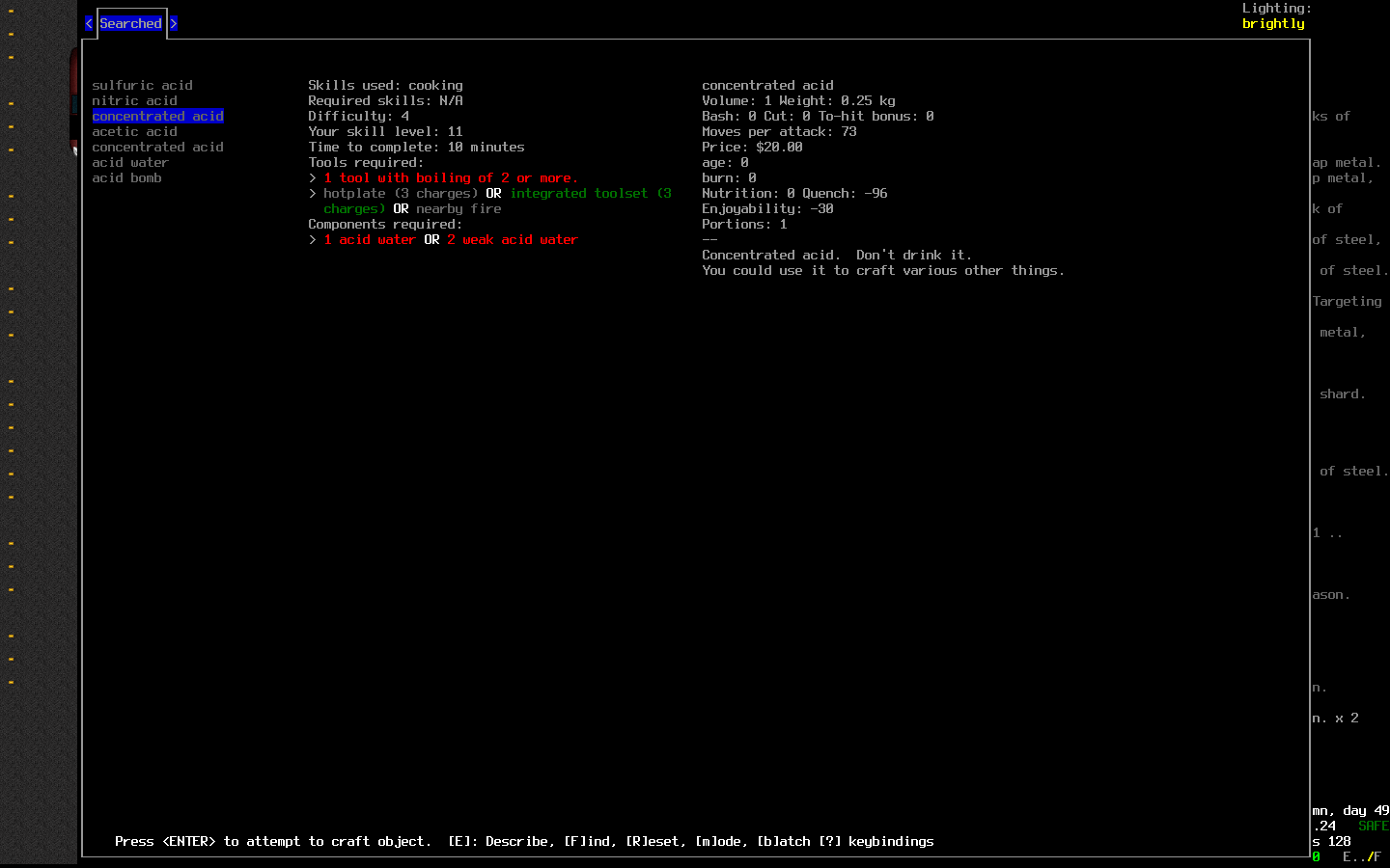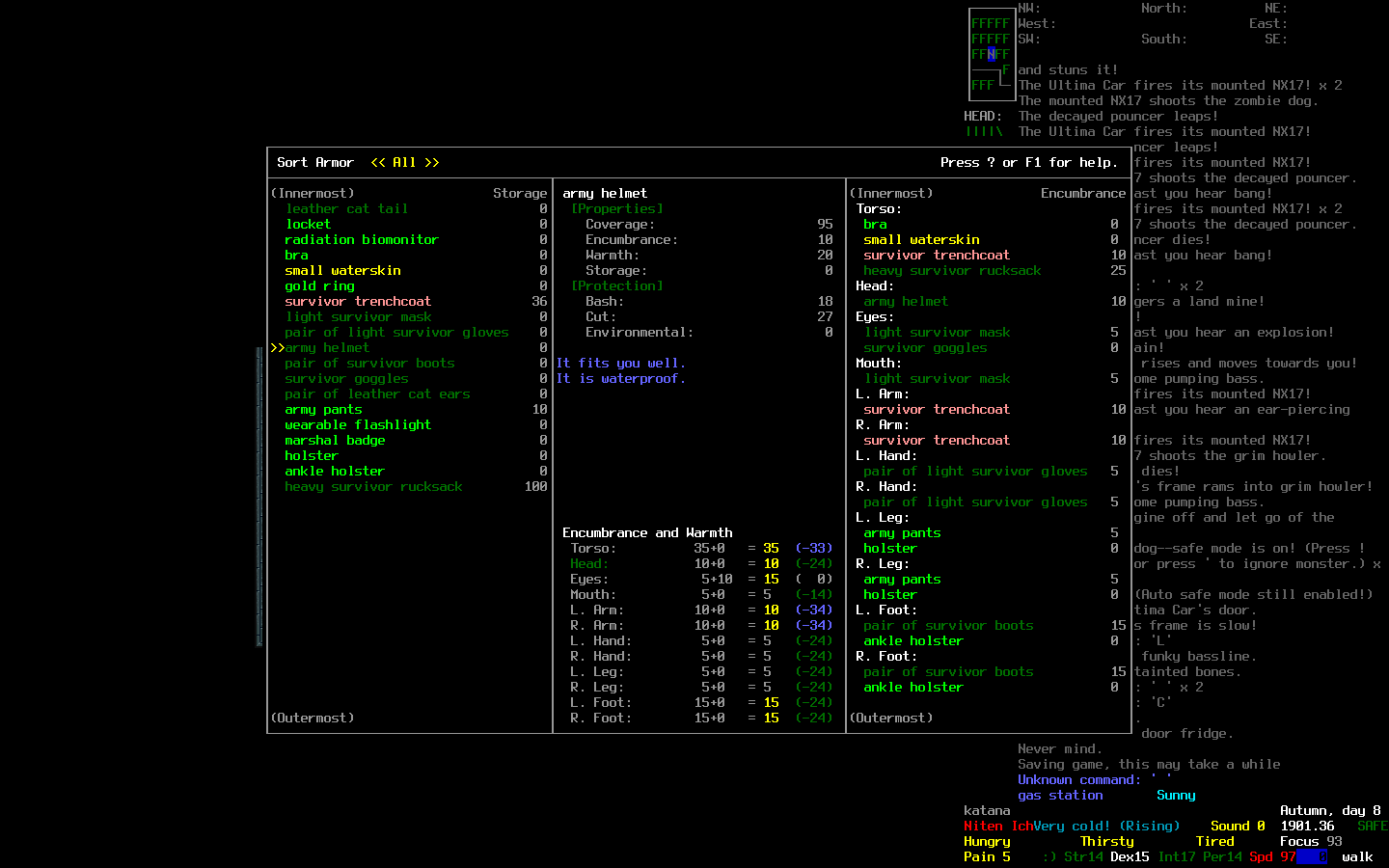 Вкатился в CDDA на днях. Давно так не потел, учтывая что даже играть особо не начал. Оказуалился я настолько что даже перса создать мне было сложно. А как играть начал так и вовсе охуел от количества кнопок которые нужно помнить. Но в игре сразу проглядывается потенциал для отыгрыша кого угодно. Буду учится играть хуле.