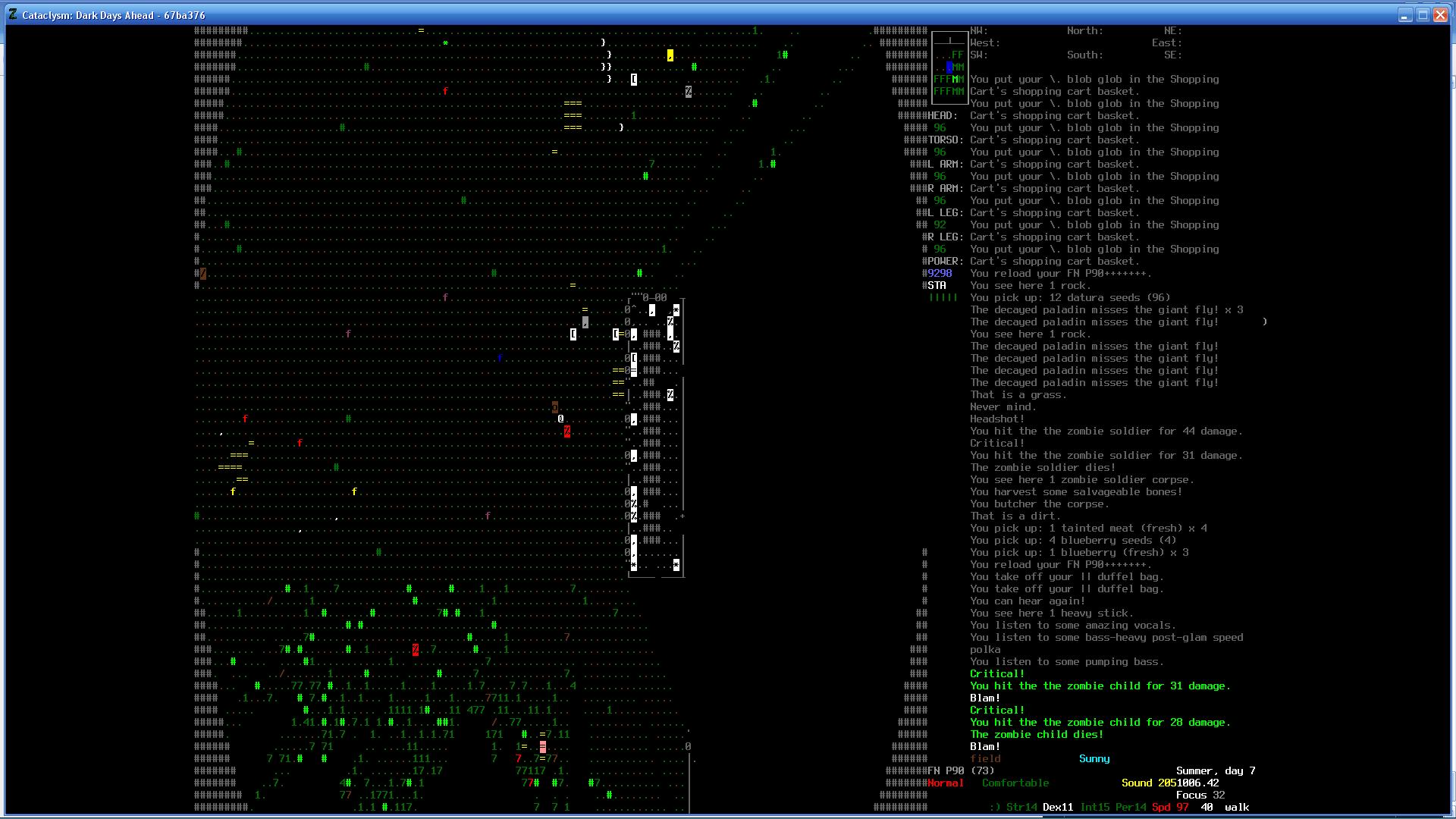 >>4653 Тащемта идея со стримом не очень. В отличии от данжен кравла, ToME или адвенчур мода ДФ, в катаклизме оче много рутины. Сон, еда, чтение, лутанье, крафт, сборка и разборка машинок - наблюдать за всем этим будет интересно только полному новичку, более-менее опытный чувак все это видел уже много раз. >трудные только первые 2 дня Значит, снижай спавн вещей и повышай спавн нечисти, как все коркорщики. С низким спавном и самодельный мушкет с самодельными патронами зачастую будет рабочим оружием снайпера.