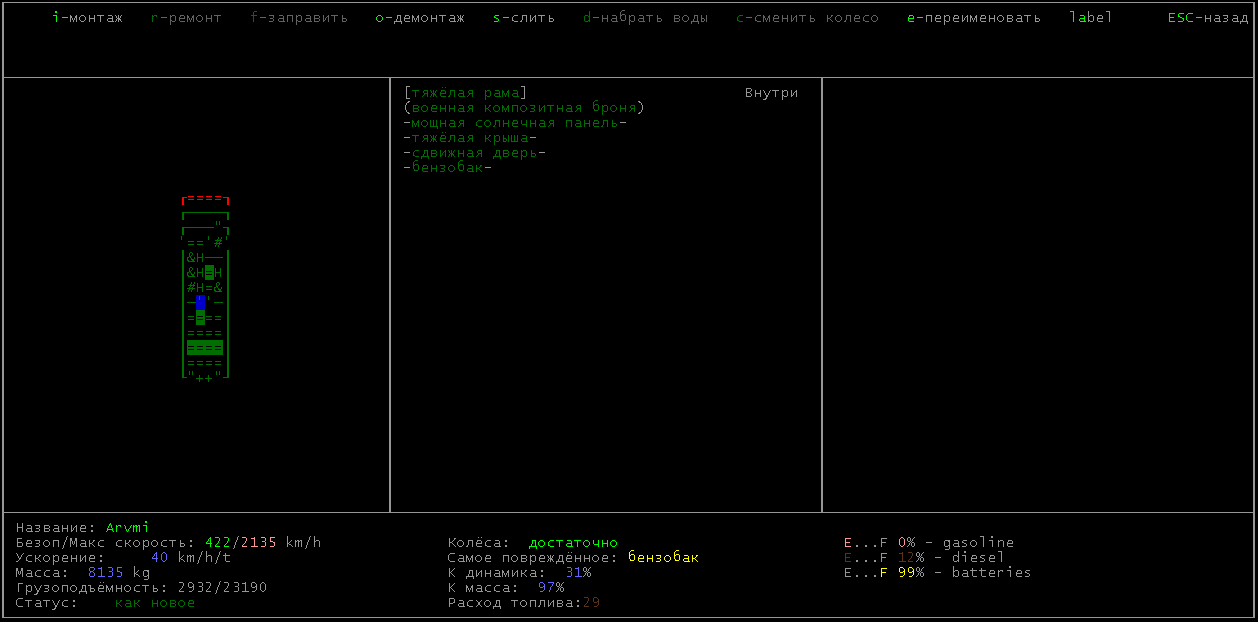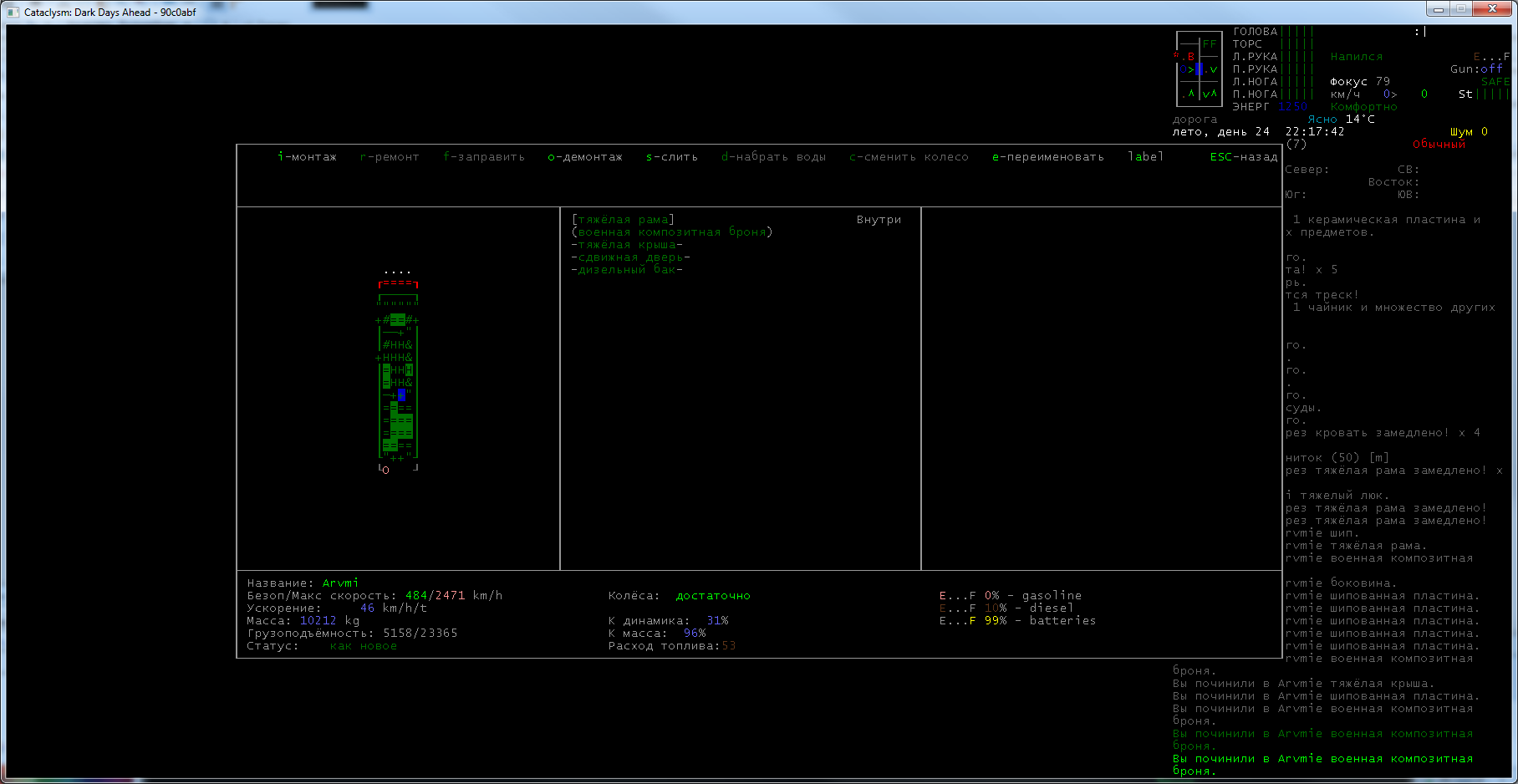 >>5539 Сначала хотел сделать домик на колёсах, а получилось это. >>5540 Это не военный грузовоз, я с нуля её строил. Сначала с батарейками ебстись пришлось, так как UPS-бионики не было, но потом всё как по маслу пошло. >импульсный лазор Это же из мода, да? У меня из лазоров только NX-17, почти недамажит, но и патронов не требует, только батарейки. Собираюсь установить плазмоган вперёд и гранатомёт справа от водяной пушки если найду, лол. >сраные пылающие глаза За 220 дней игры я ни одного пылающего глаза не видел. Где они есть вообще?