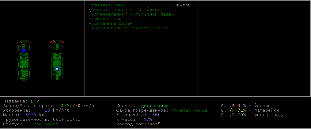 >>5538 О как, я тоже расширил военный грузовоз и сидушку по центру впаял, поебаться пришлось знатно, долго пилил. Надо бы продублировать систему управления а то сраные пылающие глаза уже в конец достали ломать. Из пушек я делал импульсный лазор впереди и сзади, чуть поебстись пришлось правда с крафтом но это того стоило.