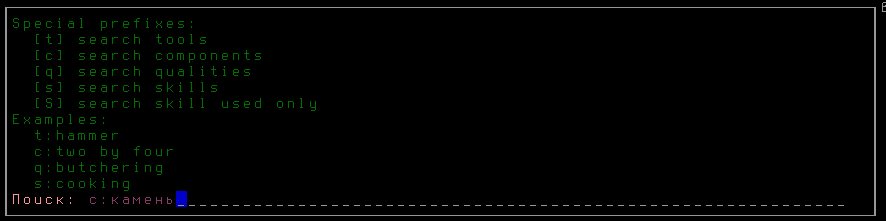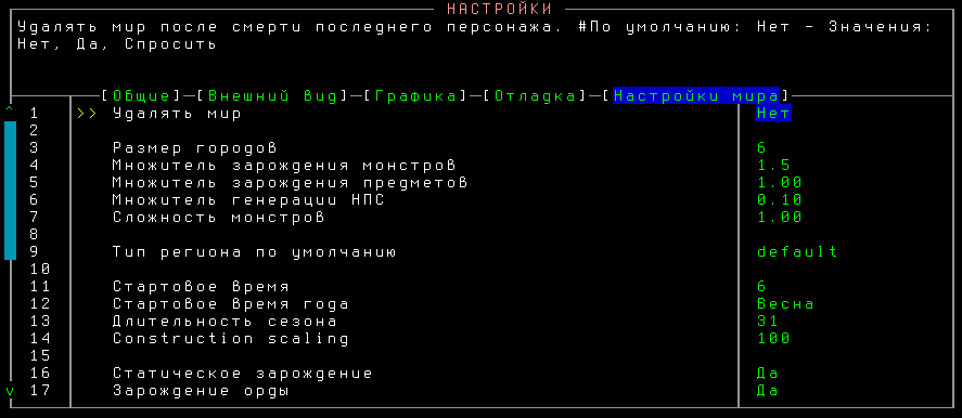 Теперь решение самой распространённой проблемы: квадраты или нечитаемые символы вместо букв. Чтобы исправить откройте блокнотом файл fonts.json в папке config и замените весь текст на следующий, включая фигурные скобки: { "fontblending" : false, "fontwidth" : 9, "fontheight" : 15, "fontsize" : 14, "typeface" : "Lucida Console", "map_fontwidth" : 9, "map_fontheight" : 15, "map_fontsize" : 14, "map_typeface" : "Lucida Console" }