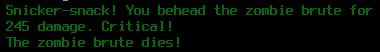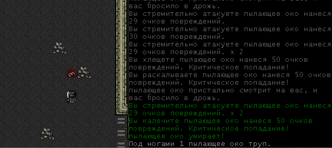 >>4603 Мне кстати показалось, что "s"mash то ли не работает, то ли через раз работает. Я все тела превращал в pulped corpse, сообщение было как обычно "вы хорошенько распиздрячили труп", но постоянно продолжали нападать голые зомбяки, как если бы я их не трогал и они вставали. Поясните, посоны. Вообще выключать надо оживление, хардкору никакого не добавляет, только рутину