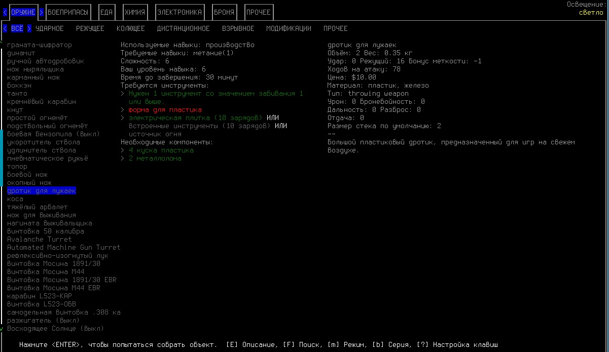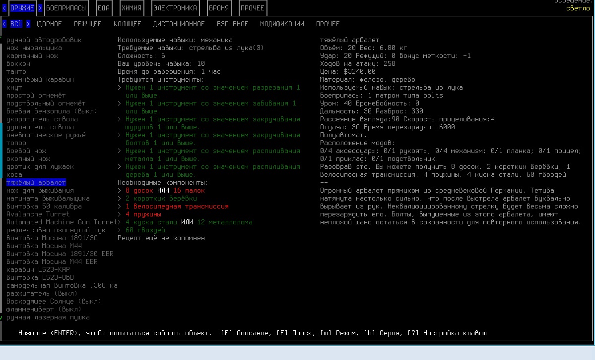Я опробовал тяжёлое рельсовое ружье. Хрень, которая в заряженном состоянии весит 17 килограмм и наносит столько же урона, сколько и дробовик ривтековский, но имеет гигантскую дальность. ривтековсие патроны реально легко делать, особенно после того, как я узнал, что кислоту из воды крафтить можно.
