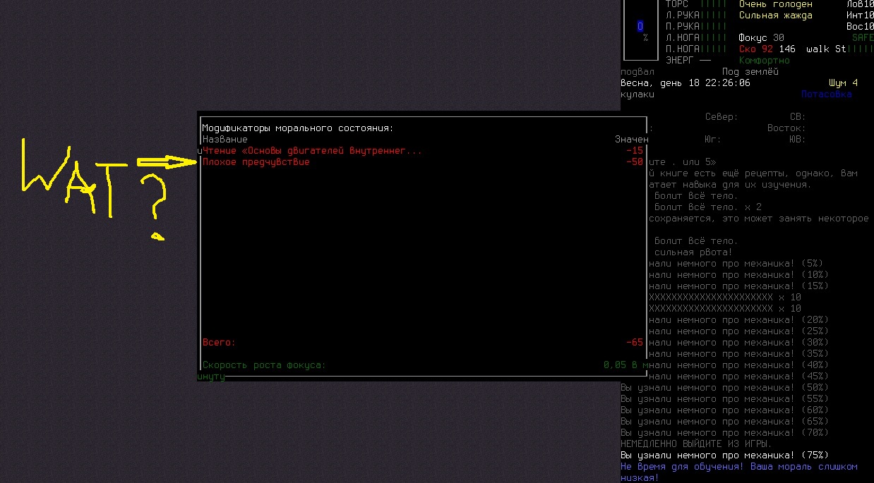 >>4734 Отлично понимаю и твой бугурт, и твое пожелание. Да, хочется песочницы-рогалика с полным крафтом и желательно не из готовых деталек, а из неких примитивов и что бы была возможность влезть во все начиная от молекулярной биологии и заканчивая космическими корабликами и прочими звездами смерти. Но катаклизм - зомби-давилка с кучей рюшечек типа беспрерывного жора и ебенячими сложностями крафта всего в первую очередь через дебильный интерфейс крафта. Что поделать.