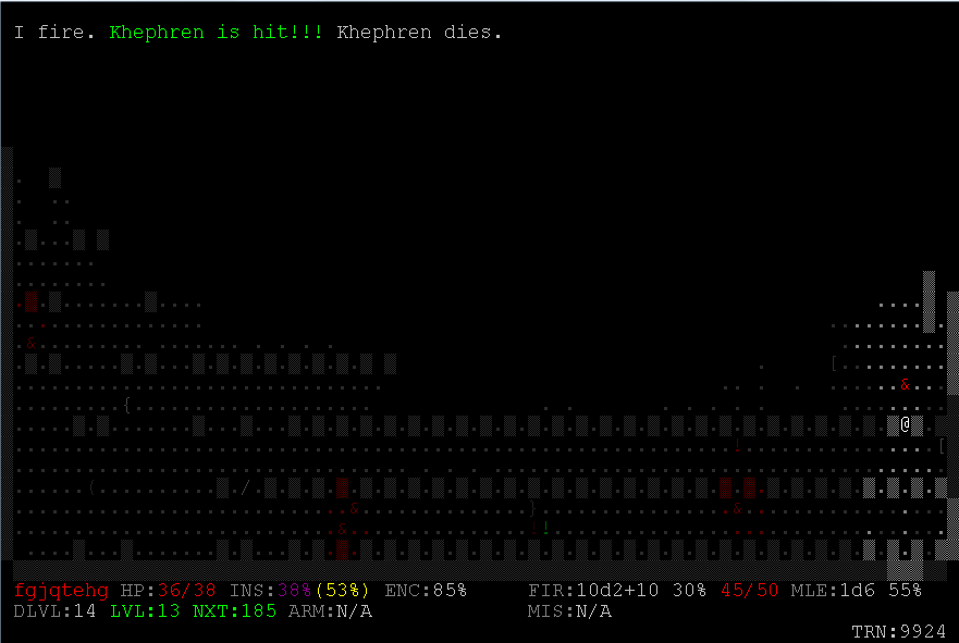 Анчовусы, спасибо за наводку, рогалик охуенный. По впечатлению -- промежуточная ступень между пятиминутным и "большим", атмосфера есть, брат жив. Очень неплохой стелс, лучший что я видел в рогаликах вообще (но если покажете какой-нибудь со стелсом получше -- буду рад). Я ничего не смыслю в С++, или эти исходники - плохочитаемая хренотень?