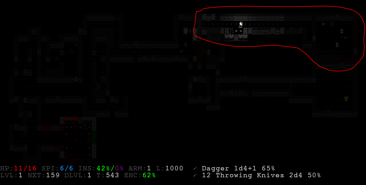 >>26336>>26335 Да не, рогой чисто по стелсу можно играть, до 15-16 уровня кое-как добираюсь >>26278 но только надо учитывать что рога тут ошибается только один раз, лол. Сначала берешь ловкость и улучшенную скрытность, потом сайлент, чтобы двери бесшумно открывать (на рычаги это не распространяется), затем либо быструю перезарядку rod'ов либо улучшенный бэкстаб. В общем нужно сразу много экспы. Потом бегаешь от лестницы к лестнице (или стоишь возле стенки скипая ходы пока мимо тебя маршируют толпы зомби, летучих мышей и всяких НЁХ), относительно безопасно в начале выпиливать можно только культистов они тупо ваншотаются кинжалом.