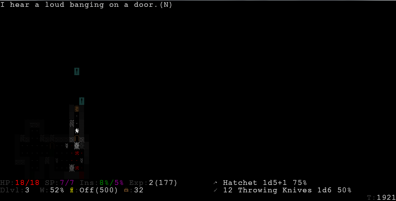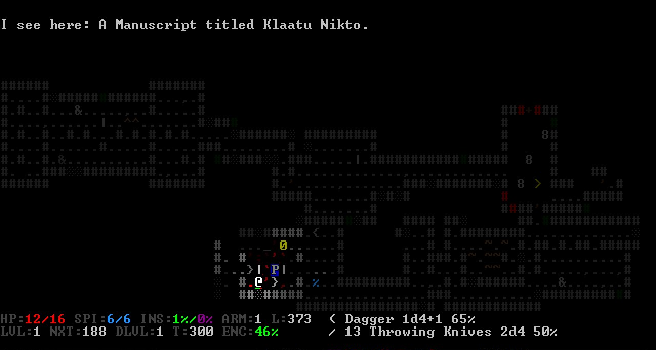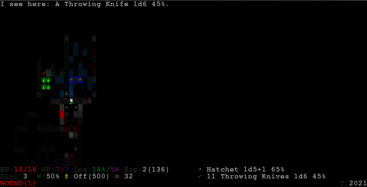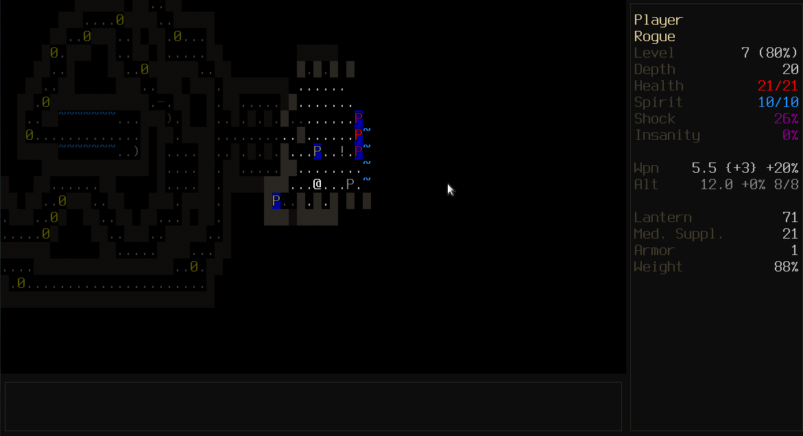 User interface The interface has a new layout, and there is a scrolling viewport centered on the player The tiles are 24x24 pixels, instead of 16x24 The font size is no longer locked to the tile size (for example a smaller font can be used) The window can be resized Added option for input mode - default keys (numpad/arrows) or vi-mode (h j k l y u b n) Improved the game key bindings Dropping items is now done from a separate inventory screen, accessed by pressing "d" (which is a more conventional method than the old way of pressing shift+enter) Removed PgUp/PgDn/Home/End as alternative keys for diagonal movement ">" and "<" can also be used in inventory screens to jump between pages (in addition to page up/page down) All menus can now be scrolled with vi keys ("j"/"k"), and the currently marked menu entry can be selected with "l" (these three keys never occur as letter indexes in menus) "Auto moving" is used by holding shift and pressing direction keys, instead of repeatedly pressing "e" + direction (auto moving is not supported when using the arrow keys, where shift is used to move diagonally upwards instead) Added a minimap, accessed with "m" Holding shift while moving markers (e.g. "look" or "aim") jumps five steps Equippable items (armor, weapons, head-wear) can now be equipped by selecting them directly in the backpack, automatically swapping out any existing item in the target equipment slot (which of course takes more turns to perform) The "throw item" command ("t") always opens a menu to select throwing item, where the last thrown item is shown at the top with the "t" key assigned - in the throwing menu, this key is never assigned to any other item than the "last thrown item" (so you can for example safely spam throwing knives by repeatedly pressing the "t" key, without worrying about suddenly throwing another item) Removed the (ugly) hit chance tables from the monster description pages - only player melee hit chance is shown now, which is part of the description text instead The generated part of monster descriptions is printed in a separate paragraph, to make it easier to distinguish from the static handwritten part Reworked the tile for Deep Ones The player is asked for confirmation before stepping into fire or traps, or before moving into deep liquid while holding a lit explosive (which will extinguish it) The player is asked for confirmation when picking traits on gaining new character levels (but not when creating a new character) Added an option to always warn when a new monster is seen (and no other monster was already seen) While aiming firearms or thrown weapons, the game no longer prints info about map features, items, etc in the aiming location (only info about any monster seen there) Many types of messages are no longer added to the message history, such as messages printed when moving around the marker ("[f] to fire") or when asking for a direction ("Which direction? [space, esc] to cancel") - this keeps the message history more clean and focused on game events Many properties now have longer and more descriptive names on the map screen (e.g. "Fear Res." instead of rFear", or "LIFE SAPPED(4)" instead of "HP(4)") Added an option for if ambient sounds should be preloaded at game startup (otherwise each sound is loaded the first time it's played) Added option to skip the intro level popup message Added more sound effects
