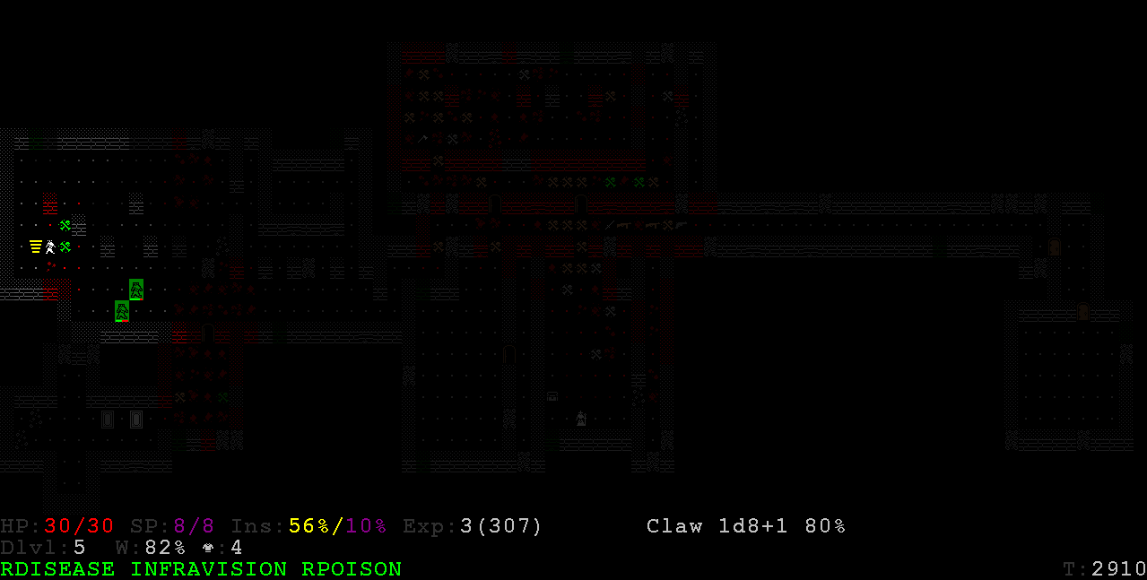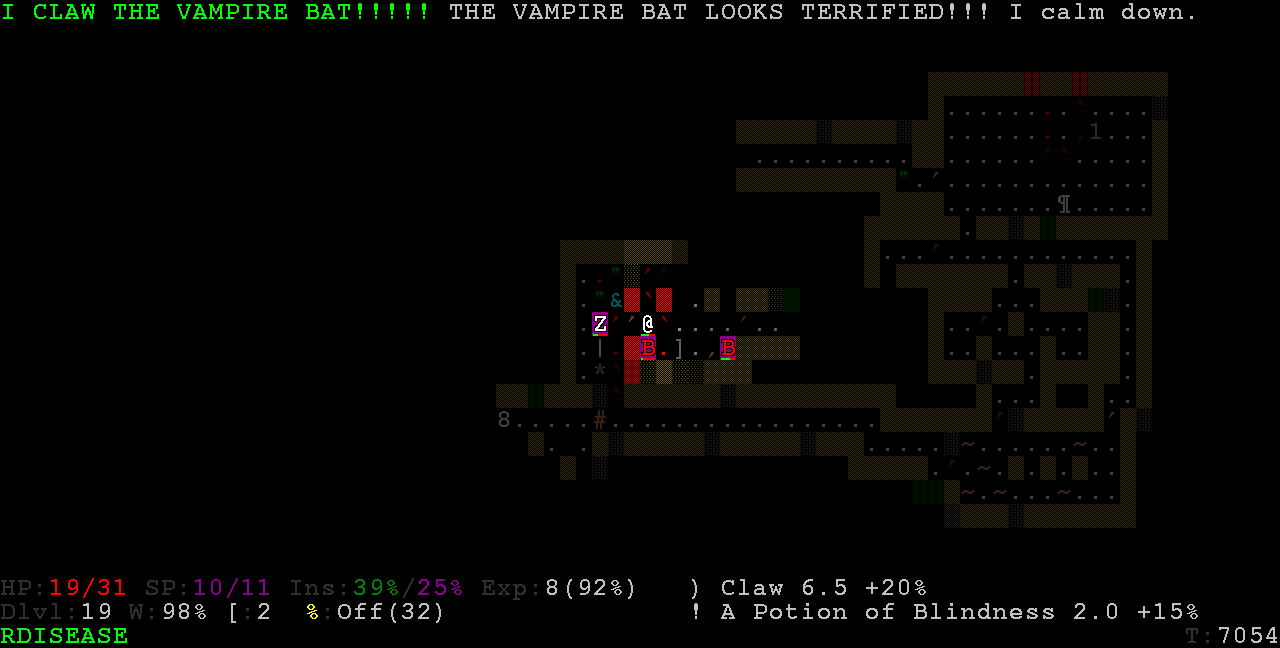>>35933 20 этаж - небольшой уровень с кучкой очень злых мумий, и одной очень охуевшей мумие, крадёшься мимо них, когда тебя обнаружат - род инвиза, и на съёбки с уровня, там выход рядом, драться с ними я даже не стал пытаться. 25 этаж - большая пещера с гигантской летучей мышью, эта тварь очень быстро обнаруживает, та же тактика, что и на 20м этаже. Дальше темно как в жопе у негра, продвижение на ощупь. Фонарь закончился, меня в тупую нарвался на кучу галимых обезьян, они моё приключение и завершили. По одному прокачанный rogue стаббит насмерть даже очень лютую тварь(если повезёт, смотря насколько она лютая), в целом после этажа 15го нет причин задерживаться на уровне, увидел выход, покравлил по комнаткам неподалёку, и сразу дальше, на следующий этаж. Драк надо избегать по максимуму, благо стелс позволяет. Пройти упырём или оккультистом не реально, я это гарантирую. Может когда-нибудь автор подправит баланс и для других классов, пока что игра только для хитрожопого скрытного бандита