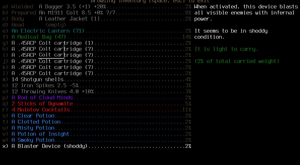 >>33952 potion of insight. Оно ещё распознаёт свитки и бутылки, но лучше использовать на девайсы. Такой, как на пике, мне в первый раз попалса, обычно сентри дроны попадаются. Ну вообще как сказать, обычно, вероятность что ты вообще какой-то девайс или род найдёшь, стремится к нулю. Можно могилы мародёрить, но оттуда опять же может какая-то лютая дичь вылезти, так что деребанить склепы желательно недалеко от выхода, ну или надо уметь быстро бегать и хорошо прятаться