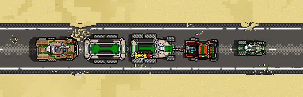 Подумал, что можно разделить сюжет игры на фазы: 1. Появление и обустройство базы. Сбор ресурсов. 2. Защиты от набигающих орд. 3. В какой-то момент вы получаете радиопередачу от СТАРОЙ ГВАРДИИ с призывом выживших проследовать туда-то, ибо там есть неплохое поселение и сохранившиеся осколки цивилизации. Вы понимаете, что долго под натиском орд/агрессивной фауны/грибов/извержений лавы не продержитесь и принимаете решение ехать. 4. Сбор конвоя. 5. Сама поездка.