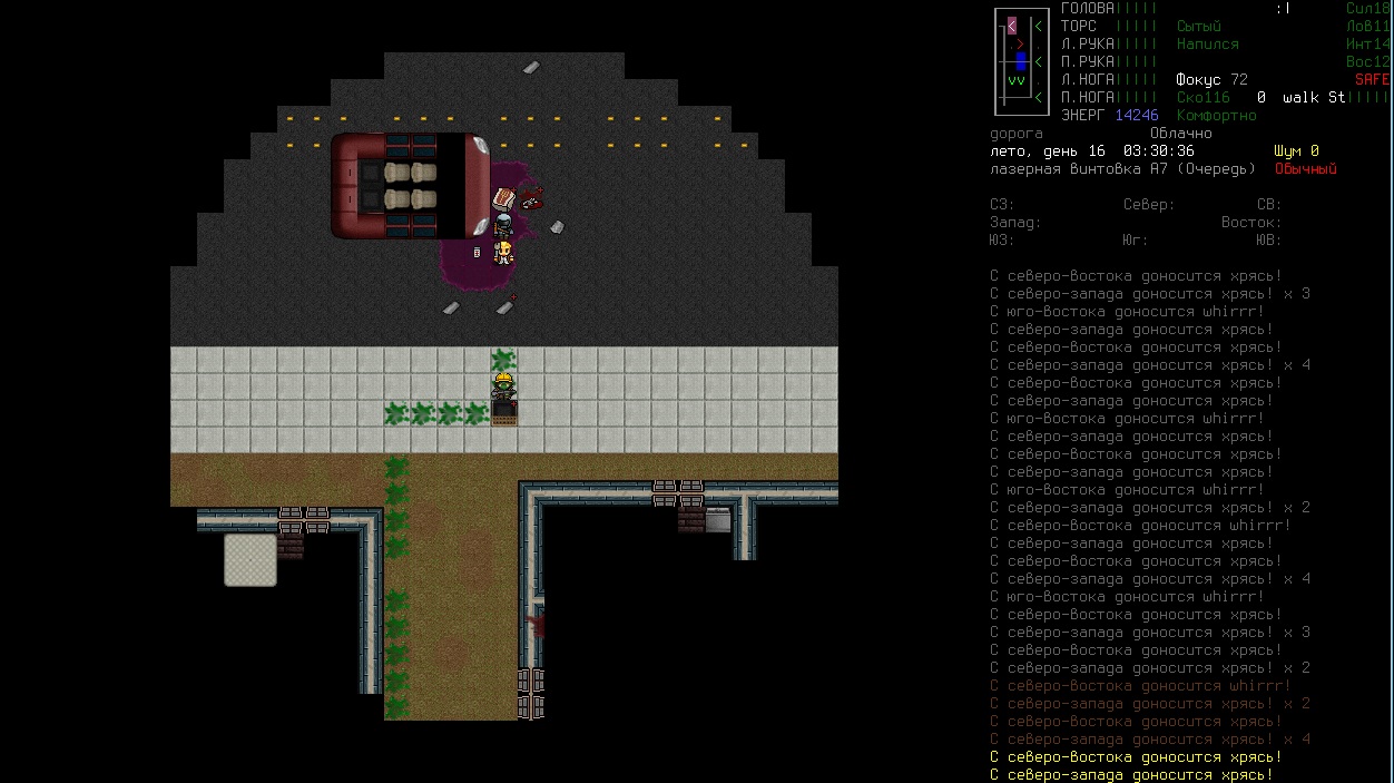 Бляд. Захожу в подвал дома - где-то за границей подвала, совсем недалеко слышны звуки джекхаммера нет А ещё галочка вверх показывает, тоже за границей с другой стороны, с пояснением тайла "you heard noise from above", примерно в том месте где моя машина с заведённым двигателем стоит. Какого хера? Я z-уровни не включал.