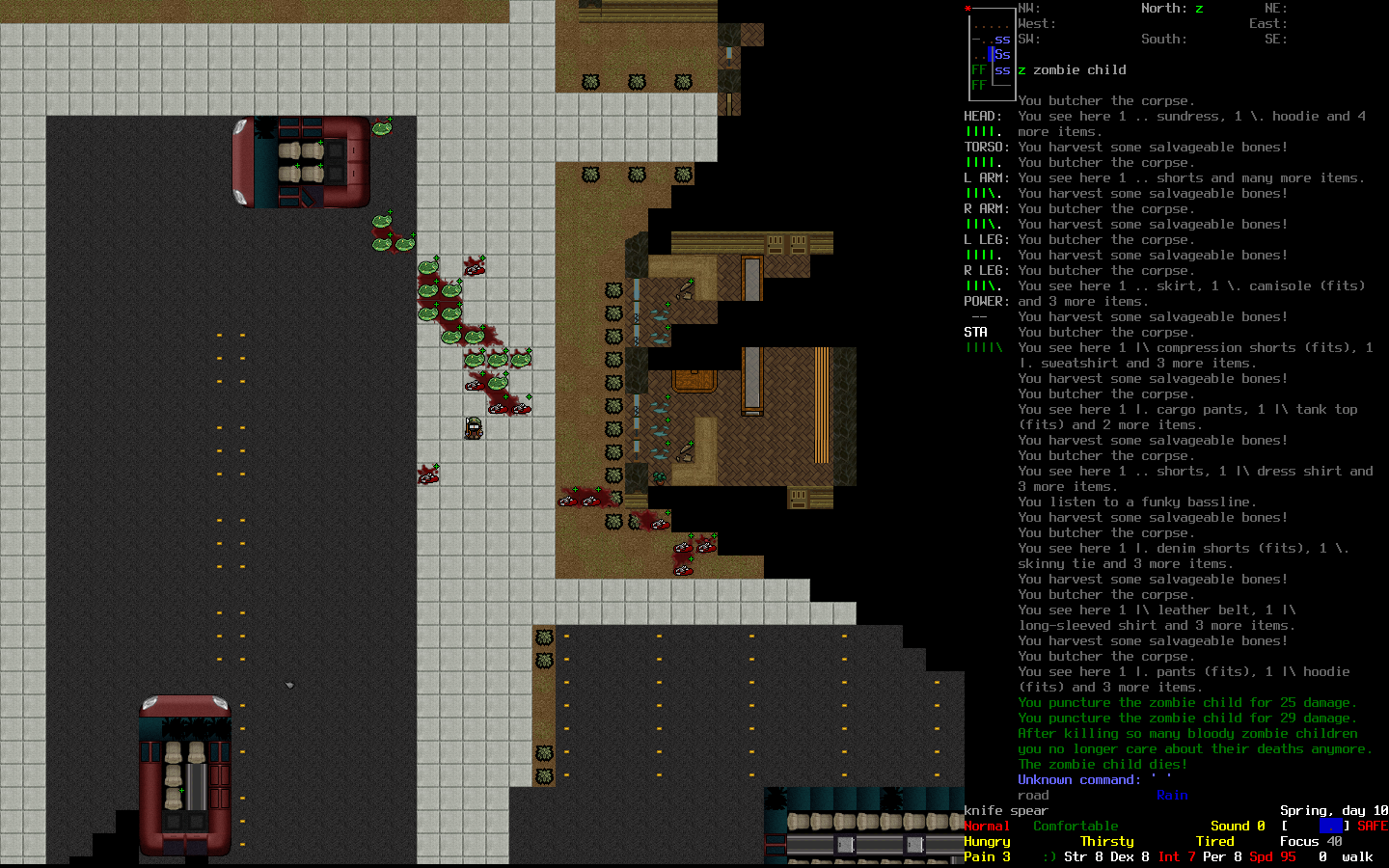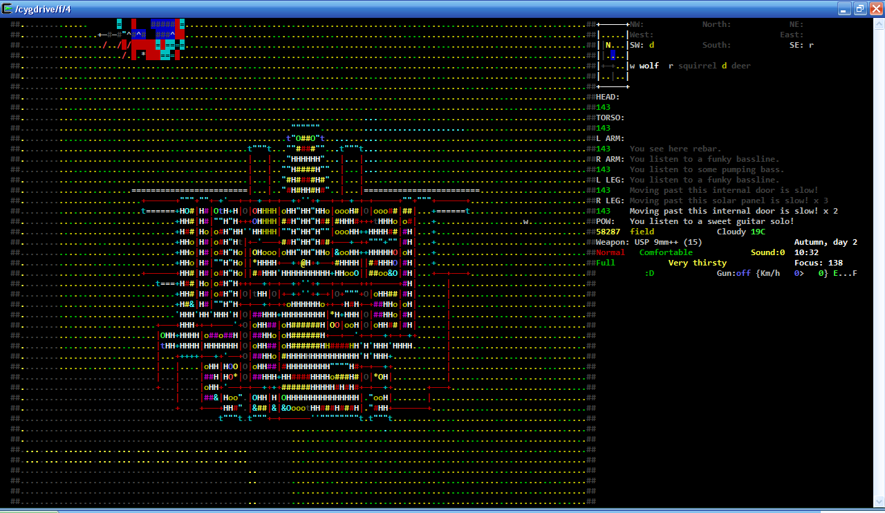 Сataclysm dda -- это уникальный рогалик включающий в себя нестандартный сеттинг, широкую систему крафта, строительства и конструирования автомобилей. Окапываемся ямами с точёными пиками в лесном домике, строим слизедвигатели, приручаем котиков, бреемся и стрижёмся. Отыгрываем фуррей, слизней, жрём странные ягоды, варим динамит из мыла, пытаемся убежать от предаторов.