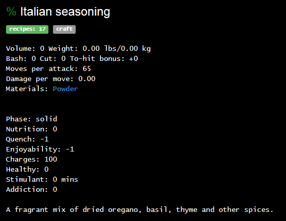 >>9534 Вот тебе ИТАЛЬЯНСКАЯ ПРИПРАВА, соль и чёрный перец. Любую из этих штук в игре можно смешать и получить бульон. Скажи, еблуша, тут где-то есть >соки и жиры от рыбы/мяса/яиц или >жир, соль, травки, желатин, ароматизатор_идентичный_натуральному и глютамат? Из чёрного перца, блядь, можно приготовить бульон? Нет? На хуй иди тогда.