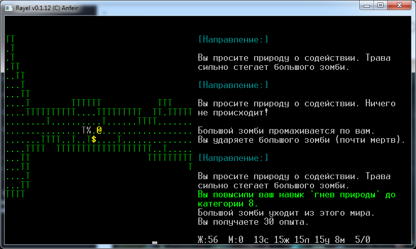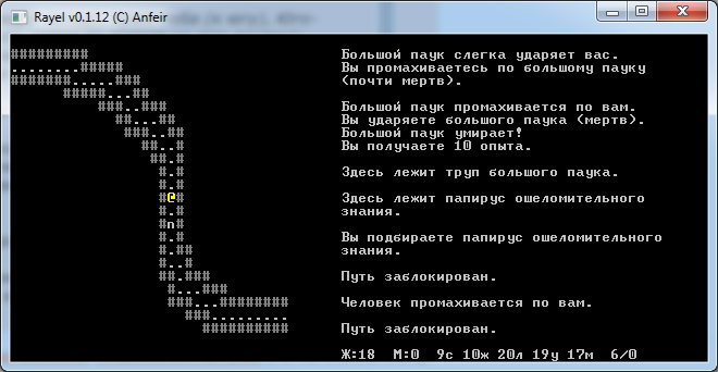 >>9334 случайно увидел тред.. Вообще Rayel как раз и делался ради "непредсказуемых ситуаций, в которые попадает герой." Из этого реализовано примерно 1%.. Использовать для этого в т.ч. и постоянно активную карту. Всё, что есть сейчас - это боёвка и квесты, в т.ч. и главные. Потрачено куча времени на балансировку сложности на разных стадиях игры, на 5, 10, 15, 20, 25-м уровне.. На самом деле, на начальных уровнях скучновато даже боёвка. После 15 уровня драйва больше.. по мне. На каком-то этапе критично становится наличие спеллов, которые выбить из определенных монстров или квестов.. Какие-то спойлеры вроде были на русском сайте рогаликов. Города - это жуть, согласен :) У монстров вообще даже есть дома у каждого свой и они туда даже иногда возвращаются, правда, это не сильно видно. Как бороться с пустотой - идеи велкам. В идеале к игре по формату не подходит способ "вынести локацию и забыть", по замыслу даже в вынесенных полностью локациях заводится новая жизнь, и т.п. Рандомность планировалась именно в наполнении статичных данжнов и активности. Не реализовано. Permadeath добавлю... Это проще всего. В разработке пока пауза, но вернусь обязательно. Подумываю над добавлением рандомных данжнов в таком же неплоском формате.. хз надо ли. Такие дела. сорри за не сильно анонимный пост.