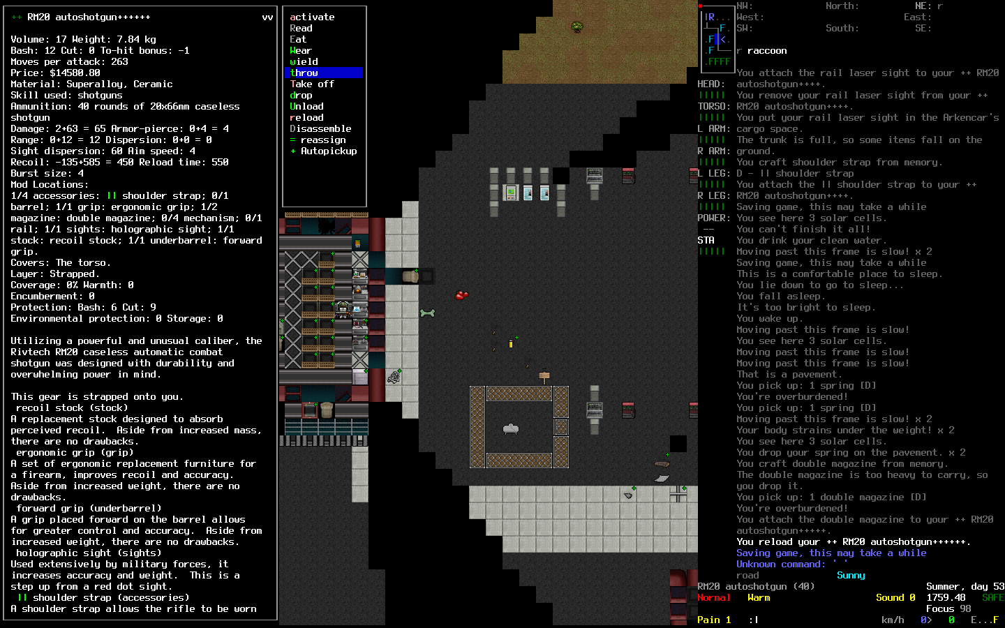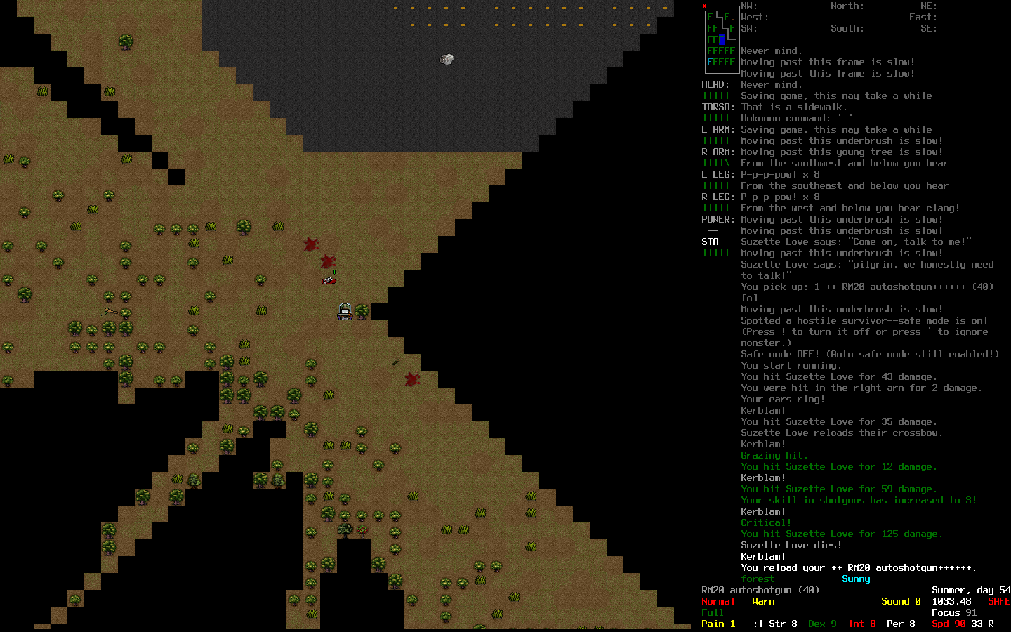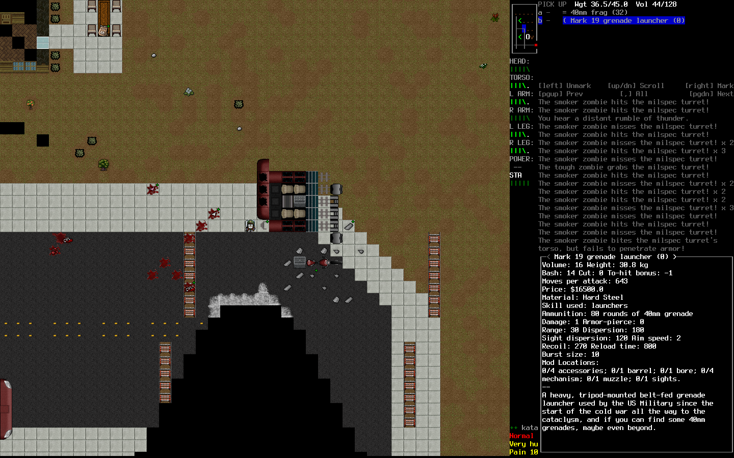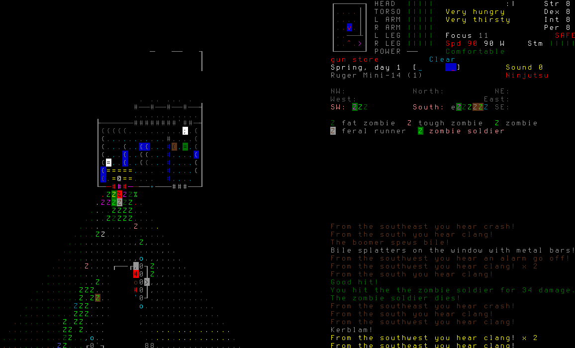 Блин, куда-то эпичный скрин взрыва проебался пока макабу шатали. Ну да ладно. Сдох возле военного аванпоста, расстрелянный турелями в свете прожектора после 2-часовой игры. Наверное глупо было пытаться докинуть мининюку до забора, эхехехехехех Но после этой смерти я наконец-то вылечился от аутизма, в моем мозгу что-то щелкнуло и теперь я буду играть в катаклизм как и положено в рогалики: не в убежище сидеть в дырявых труханах и жрать мучное целыми днями, а качаться @ нагибать @ исследовать @ искать крутые пушки и лут @ выживать в меру необходимого @ качаться.