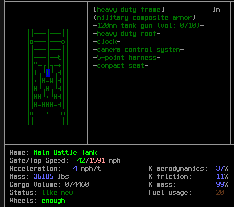 >>10445 >>10447 Танкбот вообще довольно интересный. У него 5 режимов атаки, он их выбирает в зависимости от расстояния до цели. Вблизи использует шокер, до 5 тайлов огнемет, до 20 - пулемет, до 30 - гранатомет, до 50 - 120мм пушку. Причем, перед атакой он оценивает врага и не будет ебашить по котам из пушки. А вот, скажем, по большим враждебным халкам или роботам - будет. И по машинам с тобой внутри тоже будет. Стрельба из пушки проходит так: Танк захатывает цель, если это машина, то целится в центр масс. Стреляет не сам танк - игра спавнит невидимого фейкового нпц с пушкой от танка(и оружейными скилами в единичку - отсюда хуевая меткость). У тебя есть 350 ходов чтобы скрыться. Или сделать последнюю затяжку сигареты под любимую музыку.