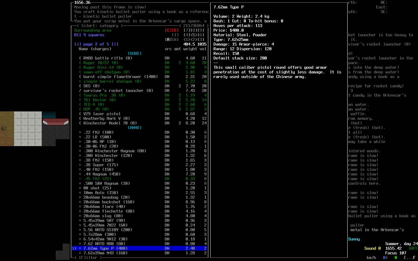 >>10290 Я палил из-за необходимости, рядом оказался рассадник слизней которые меня держали, просто паника, потом войско набежало а у меня 250+ патронов, да. На 200+ грохотом лупил, жаль скрина нет. Вообще там целая драма была когда я бегал за едой в один дои а ночевал в другом за то отжал некоторую территорию у зелёных на окраине города, есть еще дом с осами, помогают.
