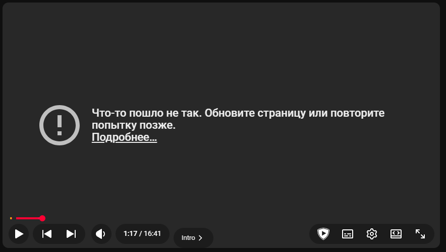 Поясните что за хрень. Пользуюсь запретом. Ютуб вроде работает, все грузиться, но видосы прогружаются только на первые пару минут, а дальше выскакивает пикрил. Ничего не помогает чтобы я не пробовал. Что делать?