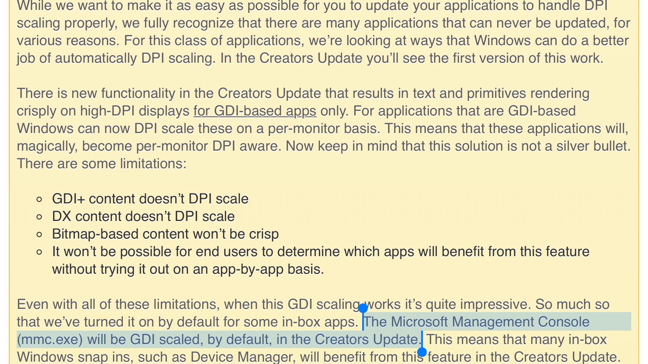 >>3604037 И тут надо помнить, что кто ноуты подрубает к теликам или проекторам - для них всё это тоже актуально - совсем другой DPI. Чобы не было мыльца ни на каком экране, надо Per-Monitor v2 масштабирование кароч