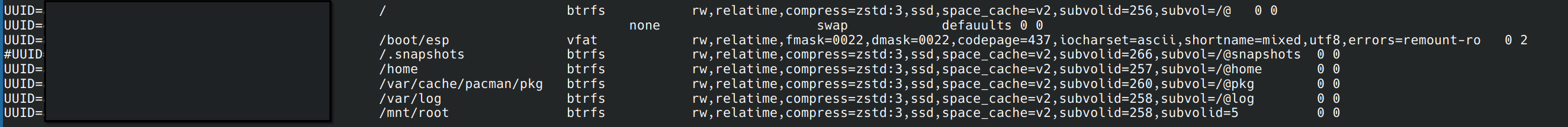 >Должно же быть Не выдумывай, привел рабочий копипаст из моего фстаба, сам мануалил понятное дело арчовскую вику по бтрфс.