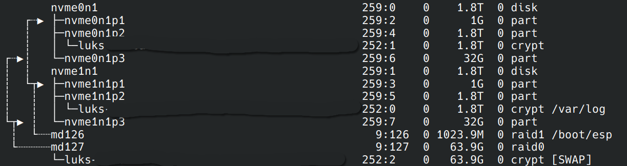 >>3607230 >Расскажи плз, какой у тебя лайоут Оба лукса - часть одной btrfs третий - своп, mariadb / хоронилище либвирта в корне с nocow. Своп вынес в отдельные разделы потому что btrfs в рейде не умеет его, nuff said.