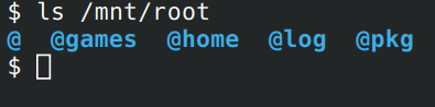 А директории /@ у тебя не должно быть, потому что ты корень ос монтируешь в @