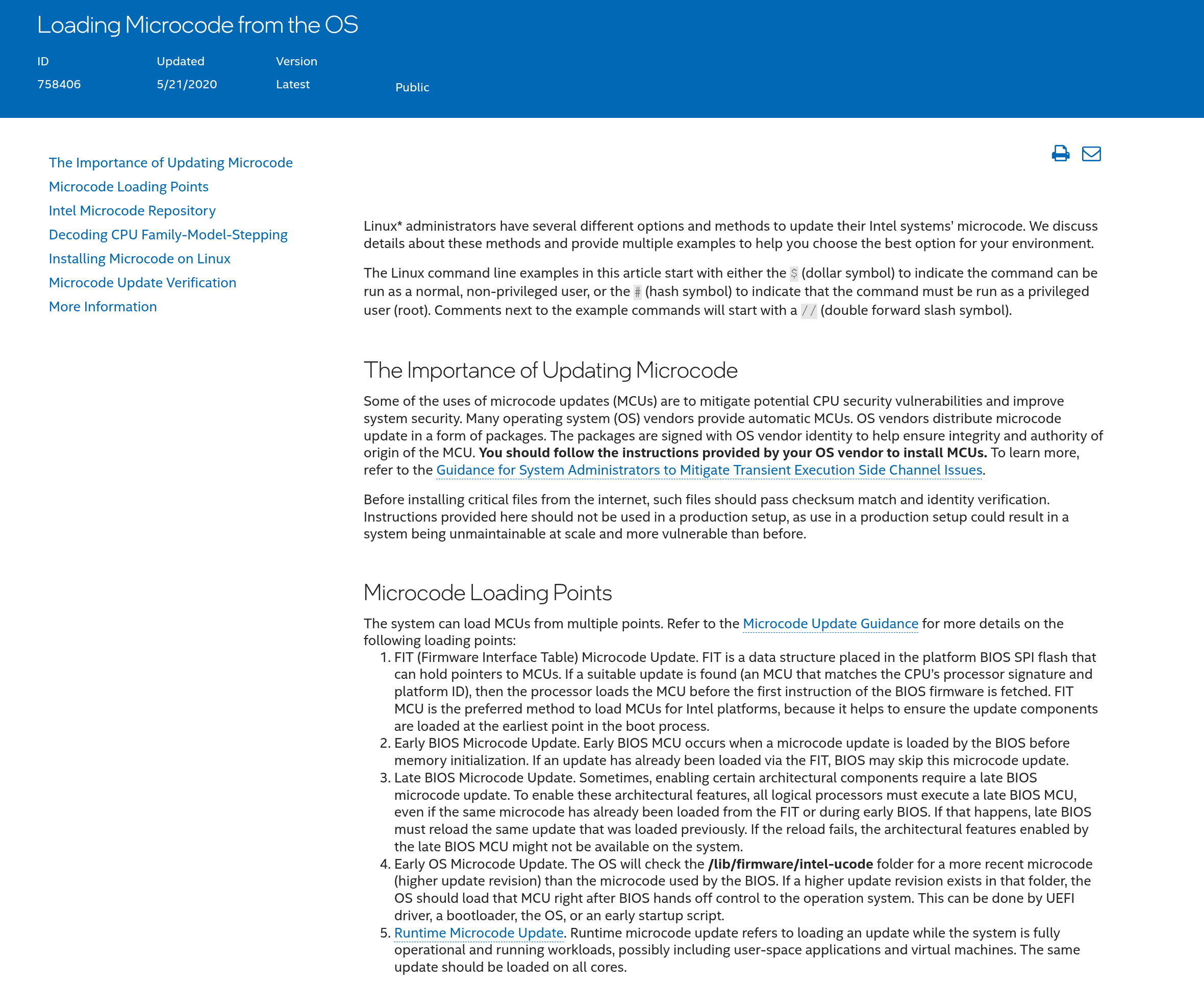 > Modern Intel and CPUs have a mechanism called "Model Specific Registers", and special CPU instructions to read (RDMSR) and write to them (WRMSR). While these registers affect CPU settings, writing to a specific one with the address of the new microcode tells the CPU to read a region of memory and apply over the existing microcode. https://superuser.com/a/1201729