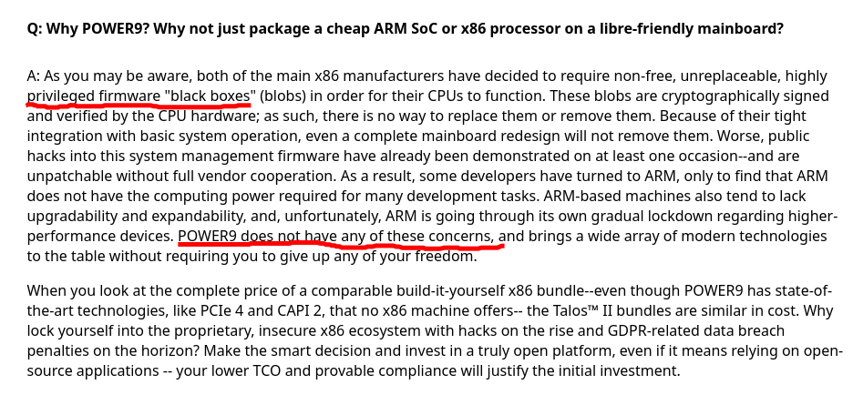>>3611297 >fully open-source down to the firmware and BMC Открытые исходники фирмвари не делают железо свободным. Вообще OpenFirmware использующаяся на ультраспарках, поверах и повермаках и так с 90х годов открыта, но тут наверное речь идет про конкретно зашитую в комп прошивку.