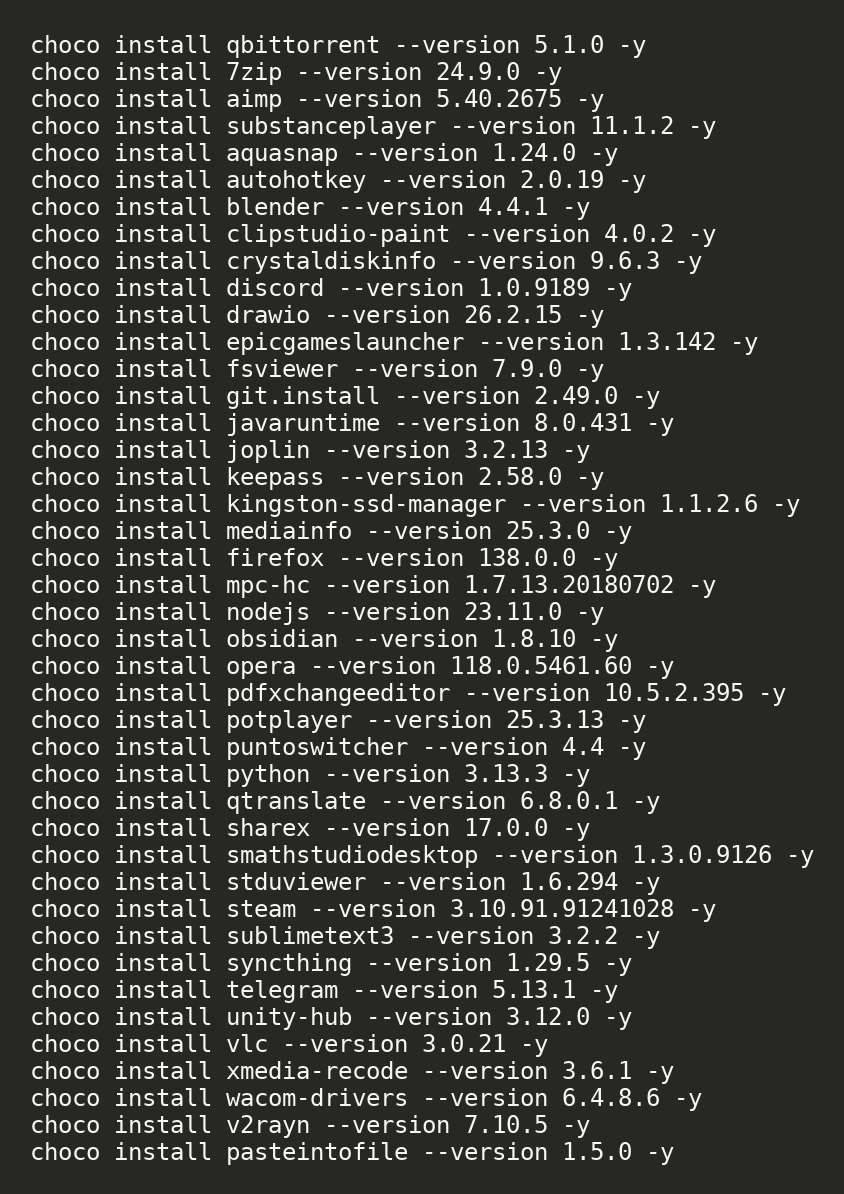 1. База: менеджер пакетов scoop, браузер Chrome, текстовый редактор Notepad++, плеер MPC-HC, терминал Windows Terminal