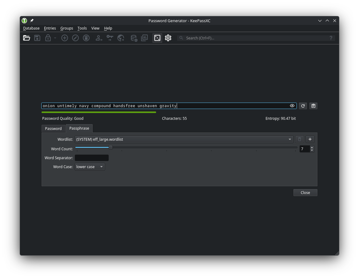 > Как ты это переберешь, не зная последовательность моих конвертаций Это ключевой момент и слабое звено в процессе создания пароля. Если тебе нужно просто на выходе с минимальными усилиями получить высокоэнтропийный пароль и ничего более, то пожалуйста, пользуйся. Да и в лоб такие вещи конечно никто перебирать не будет.