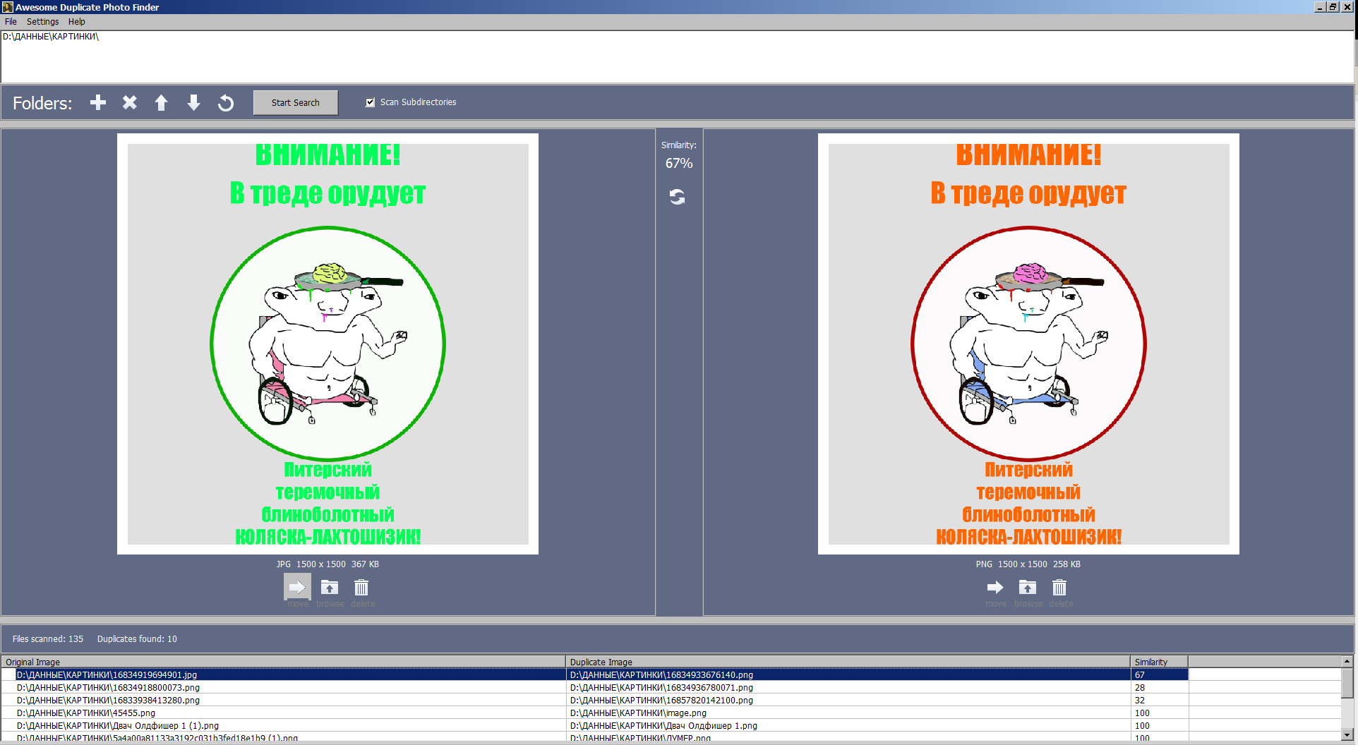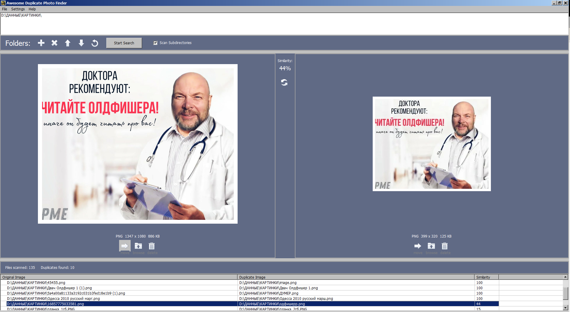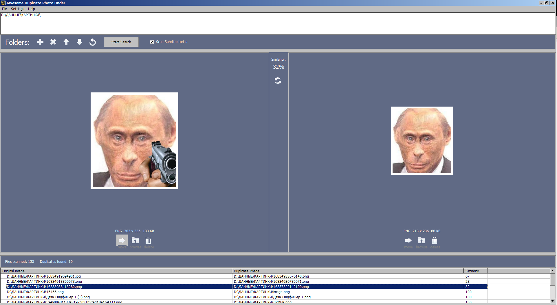 Простая программа с дизайном из 90ых, но ищет дубликаты фоток, даже если они не полностью совпадают. Немного отличается содержимое, разрешение и пр.